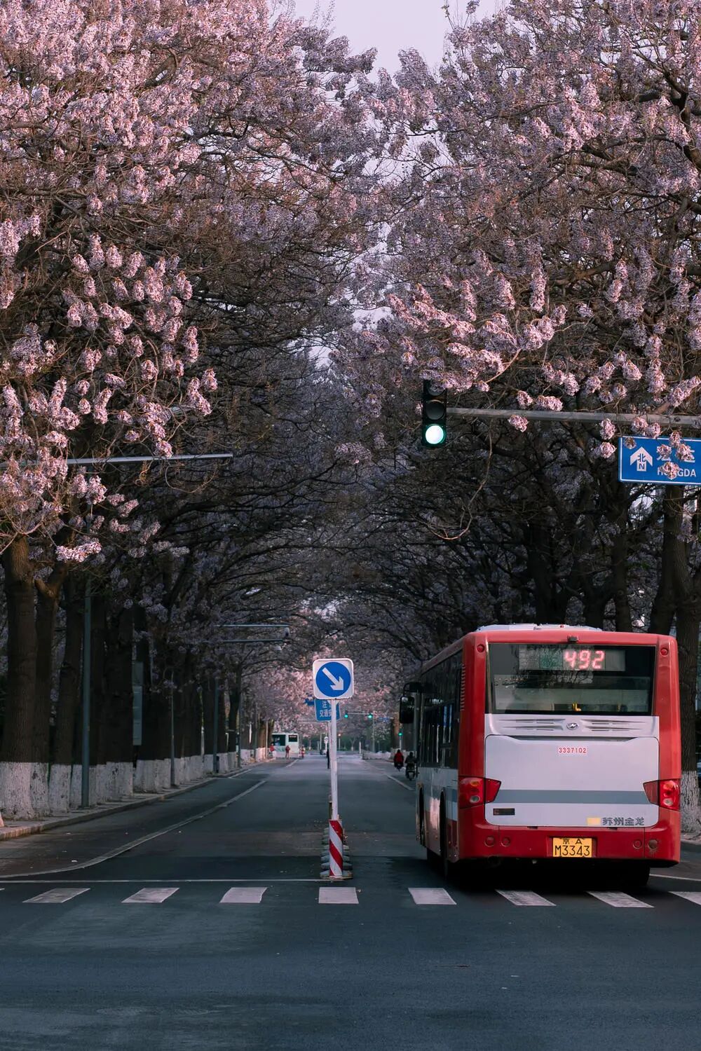 点评:因为路边的花,这条街确实很好看。但是画面中的公交车实在是一大败笔。
