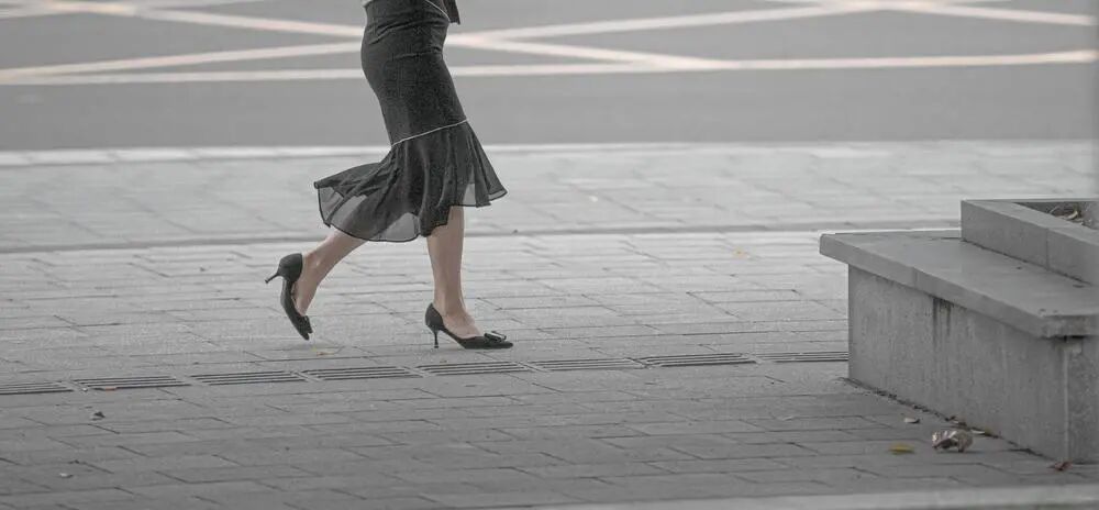 路上一位女士,走路的样子好看。我拍下了边,但是照片上半部分不好看,有很多汽车,改来改去都不行,干脆都不要了,反正只是走路的样子好看,有腿就行了。请老师多多指教