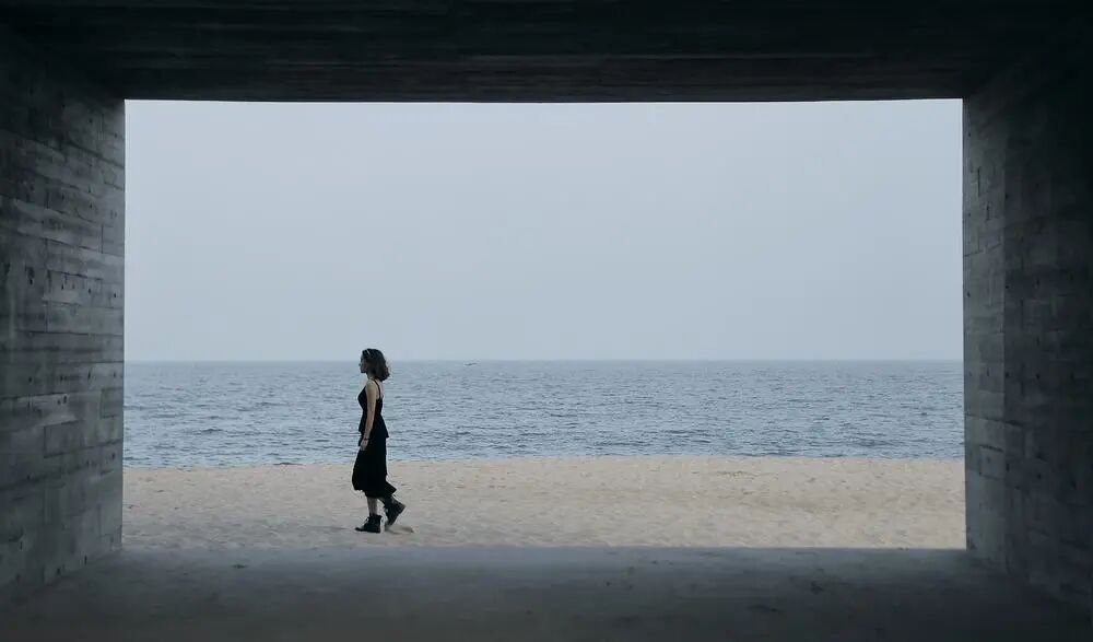 和女友去海边玩,在孤独图书馆建筑的外侧有个长方形的走廊,尽头是沙滩和大海,像是在画框里一样,想要营造孤独和静的感觉,提前告诉了女友大概的位置,等到没有那么多游客的时候按下了快门。