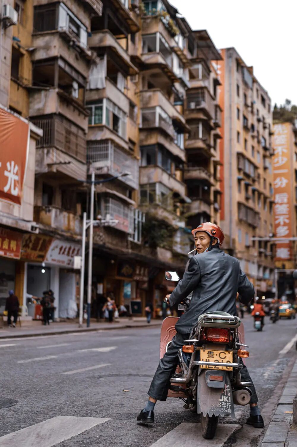 周末去遵义市吃吃喝喝,第二天拿起相机去拍拍拍,因为老城所以很好拍,看见他穿着西服,骑着摩托,叼着烟,有点生活气又有点浪漫,便拍了下来。很感谢他回头一眼,让照片更生动。自己平时了就是随便拍拍,理论知识不扎实,观望了很久点评,直到这张才有勇气求点评。