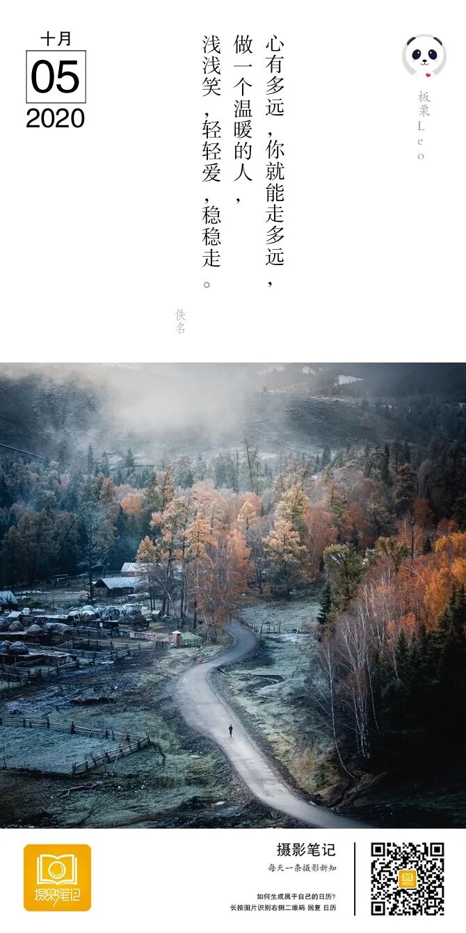 曝光方面,我觉得有点可惜的就是村庄比较暗淡,如果有一束光打过去,和右边的黄叶做个对比就好了。然后如果里面也有反光的金灿灿一点的感觉,加上人拖影子,就更棒了。这个需要运气,可以等等试试。