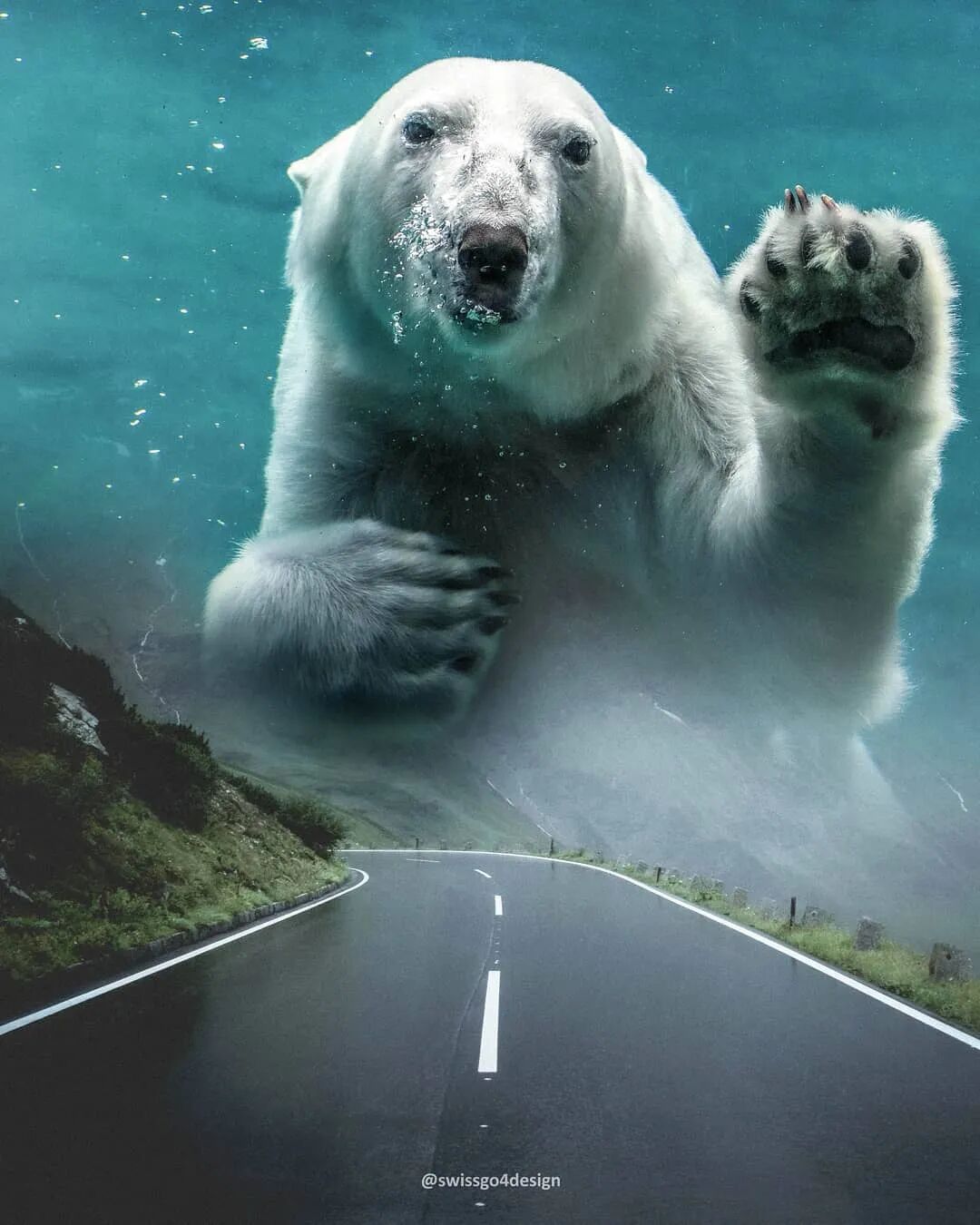 对于汉斯鲁迪•拉姆绍尔来说,数字艺术拥有无限可能,它会随着科技发展不断进步,而它本身的能力,就能给创作者提供极大助力。汉斯鲁迪•拉姆绍尔的数字作品十分大胆,在海中游泳的北极熊,下半身的位置变成了一条公路;在荒野中前行的摩托车队,正在朝一个巨大的狮子前行;在雪山前行的滑雪者,似乎要一步步走到云彩里......