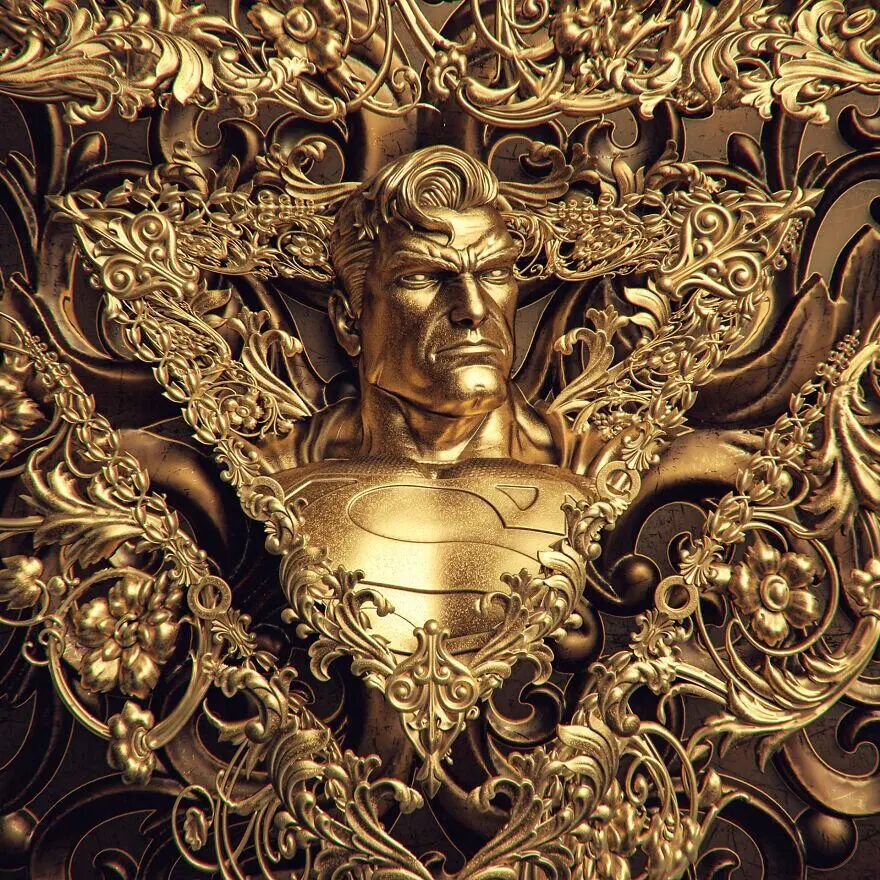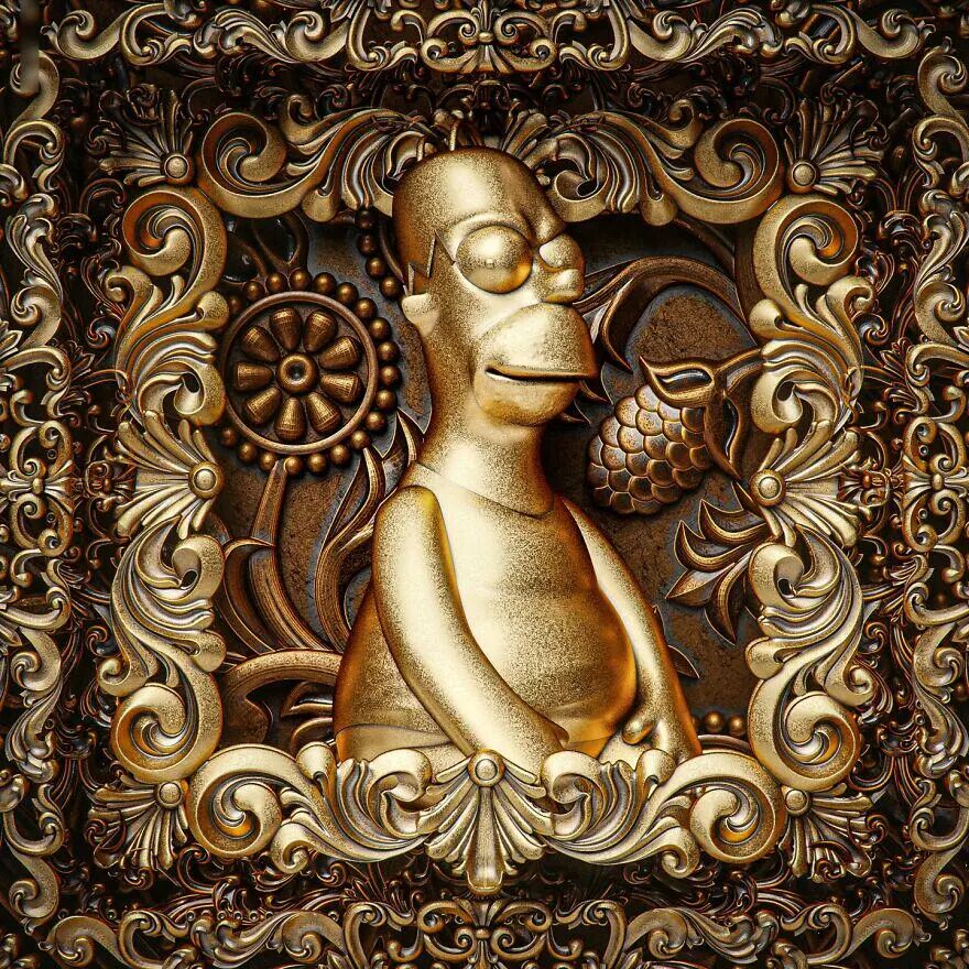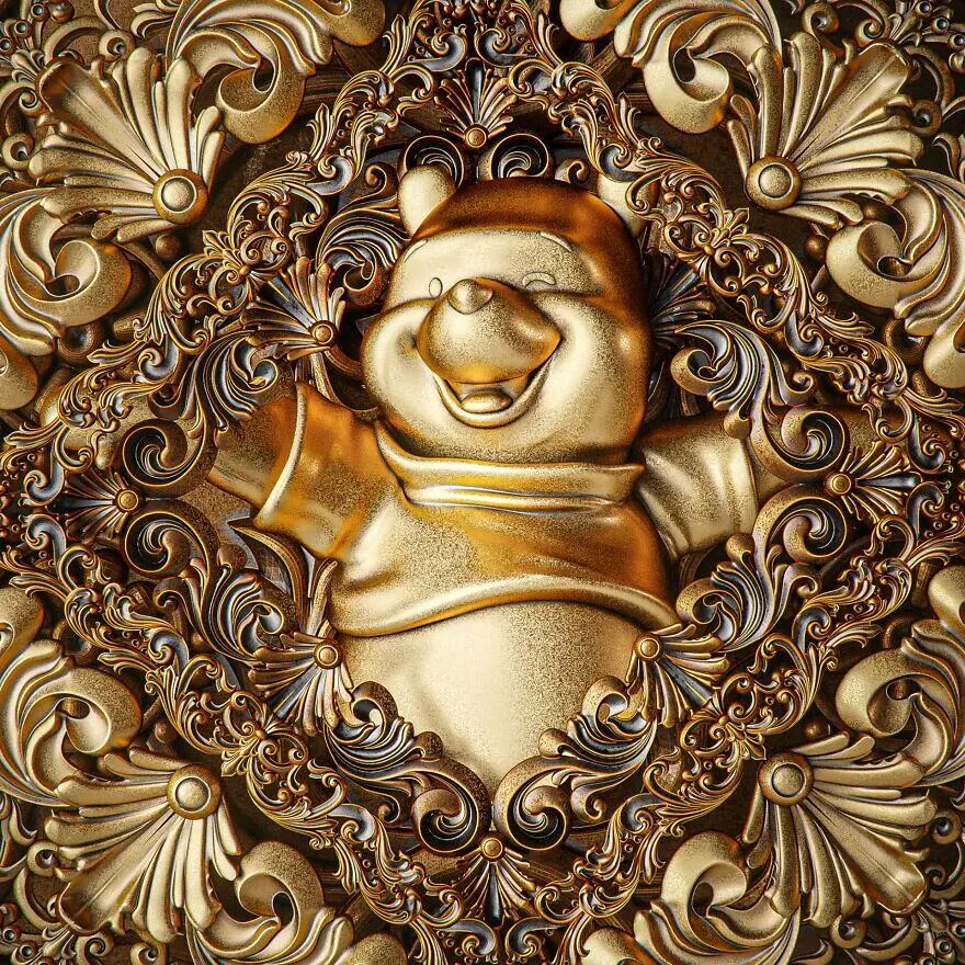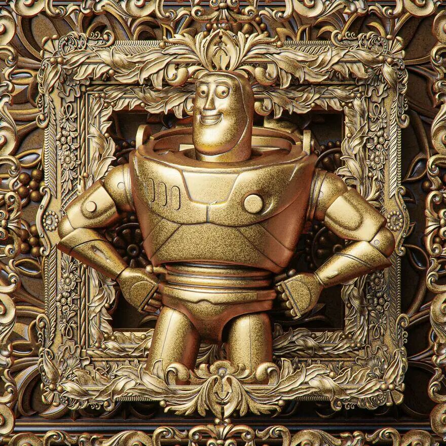 就如同这组作品的名字一样,每一个角色都变成非常真实的金雕塑,如果没有人提醒我们这是一组数字作品,相信很多人都会将它们误以为是纯金打造的雕塑作品。