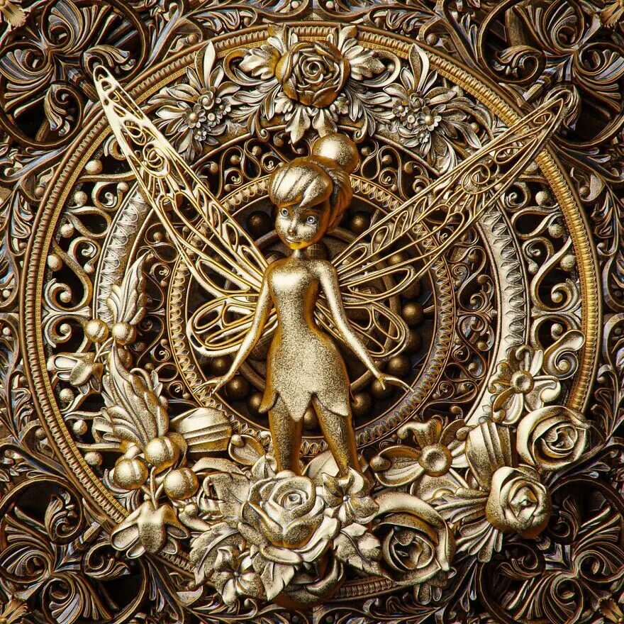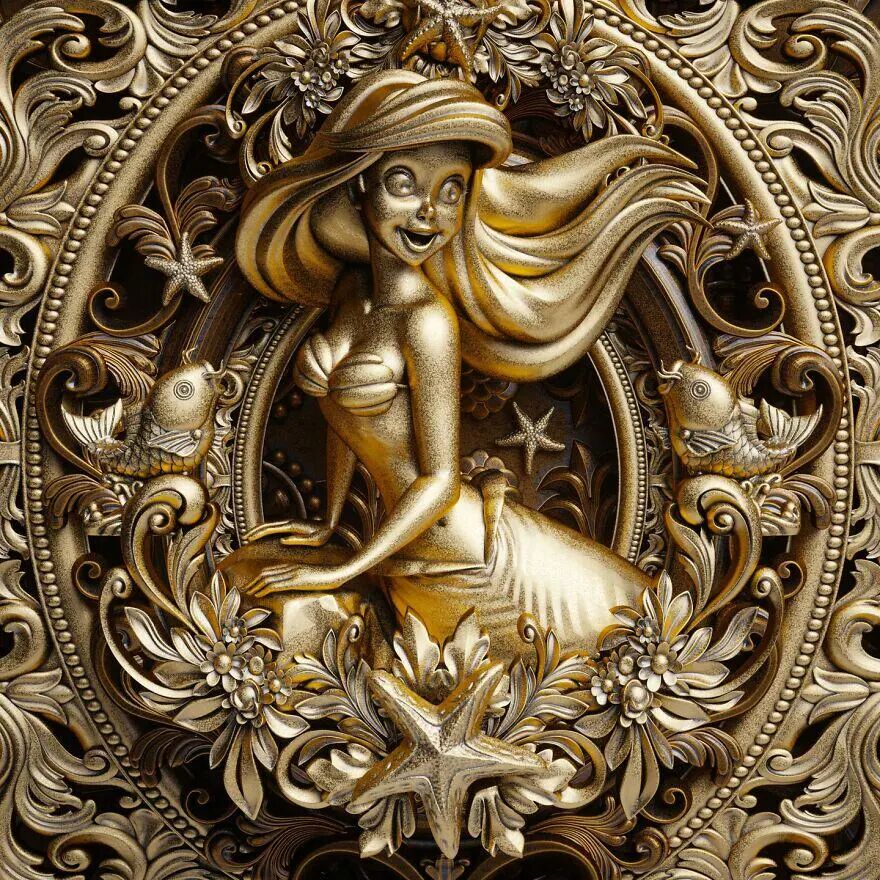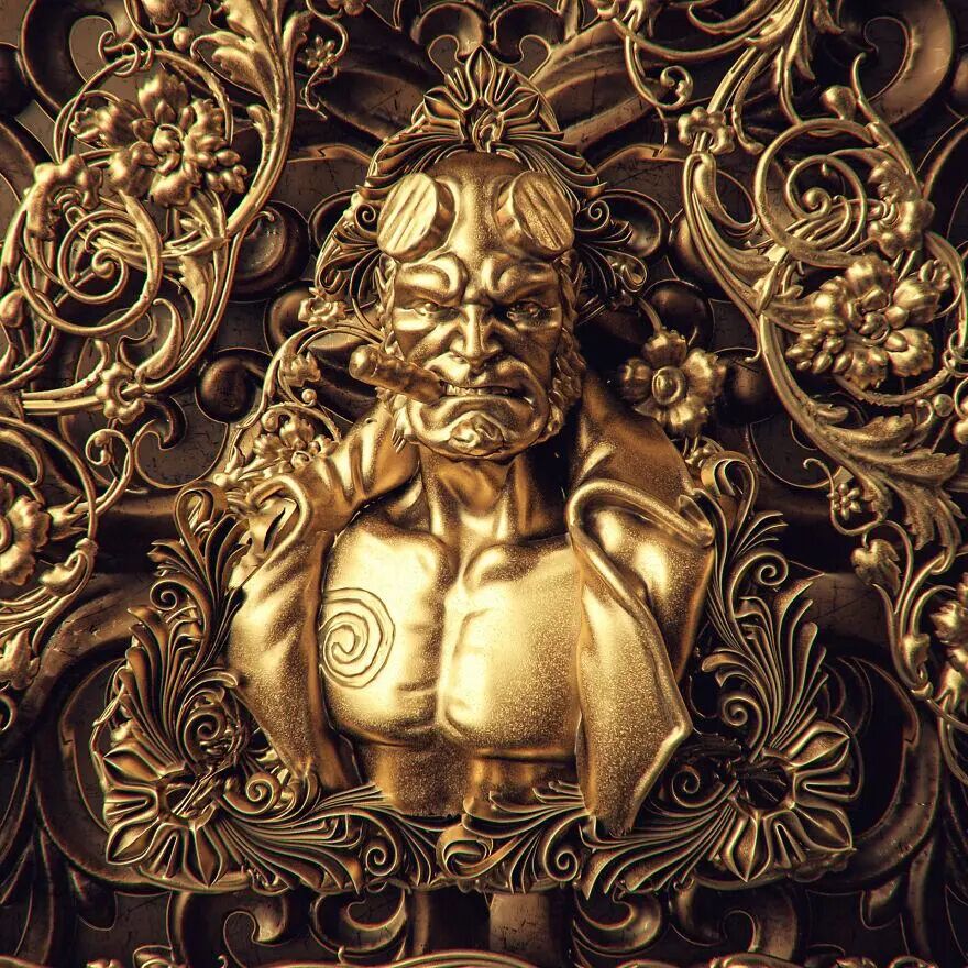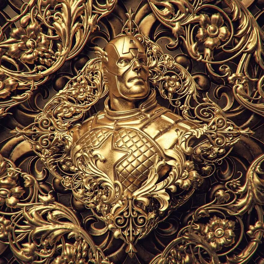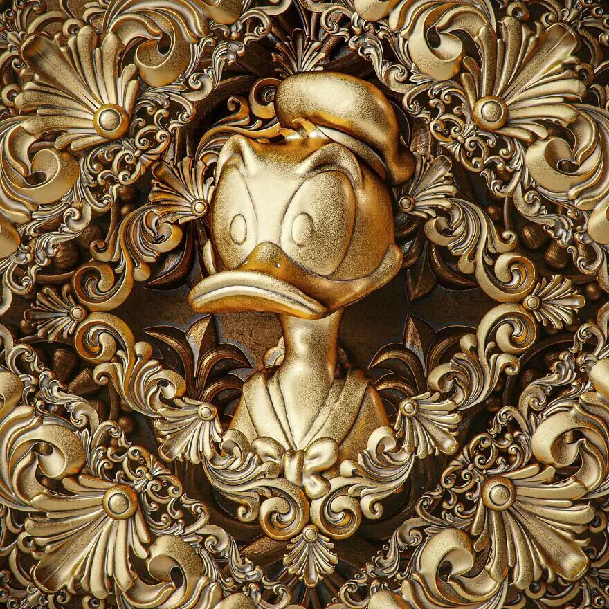 就如同这组作品的名字一样,每一个角色都变成非常真实的金雕塑,如果没有人提醒我们这是一组数字作品,相信很多人都会将它们误以为是纯金打造的雕塑作品。