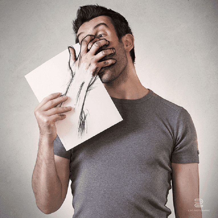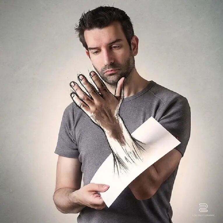 这位艺术家创新性地将摄影与插画进行结合,创作了一组特别的艺术作品,他将插图插入自己的照片中,并进行了数字处理,让画面呈现出一种神奇的状态,仿佛艺术家在自己画自己,当现实与虚构结合在一起时,带给人耳目一新的感受。