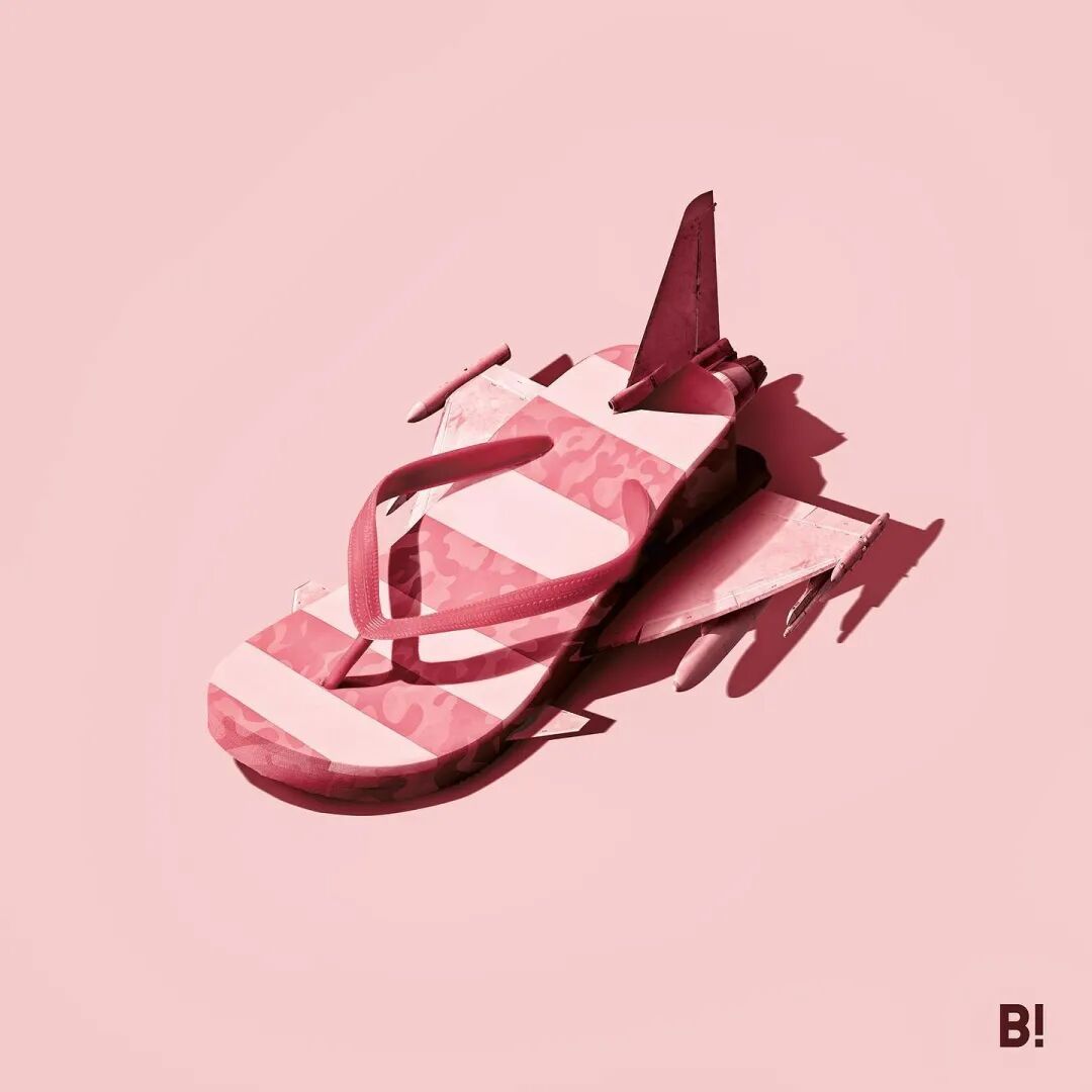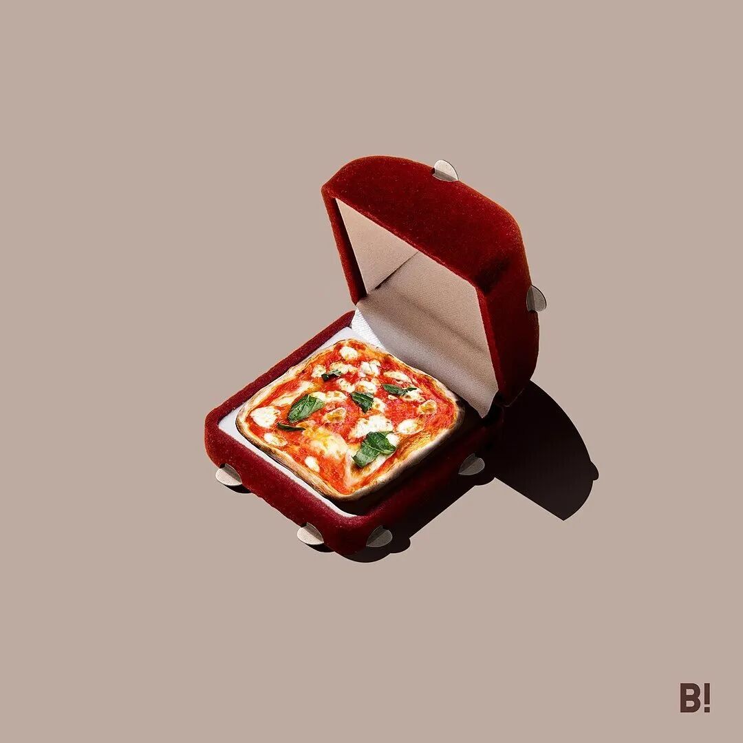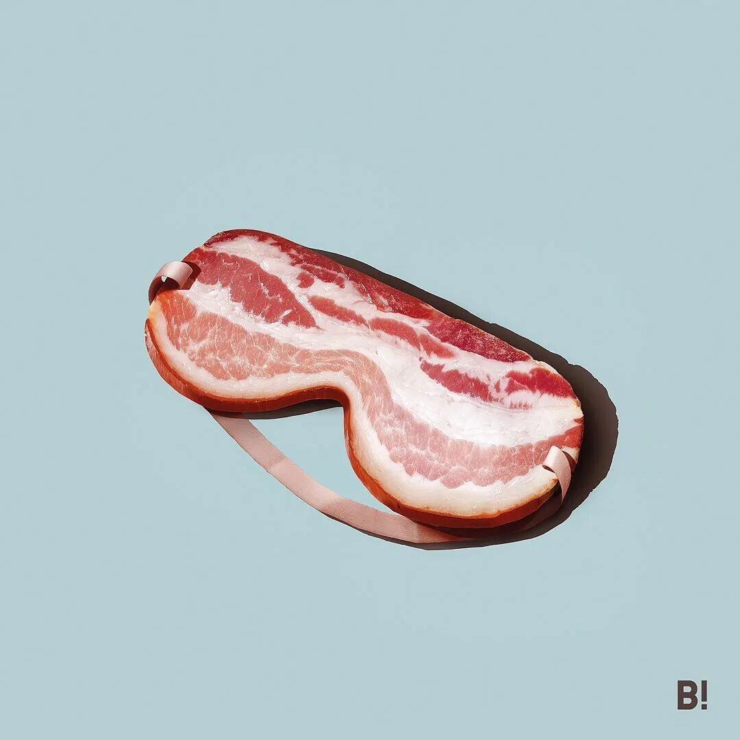 但是不用害怕,这只是这位意大利艺术家的一种创作手法而已,他乐于将各种事物和元素进行混合,在朴素和极简的背景下,图像的融合变得更加引人注目,作品中充斥着各种不合理,我们可以看到带有蟹腿的钳子,装在首饰盒里的披萨,看起来像鸡蛋的遮阳帽,培根制成的遮光眼罩等等。