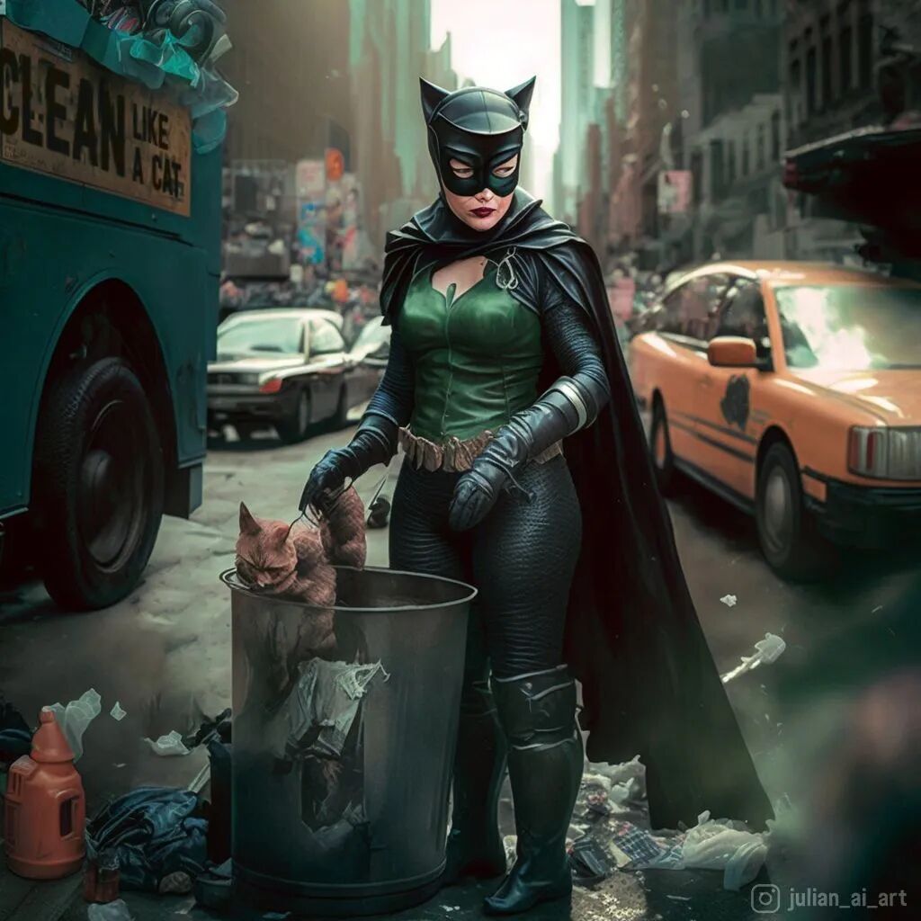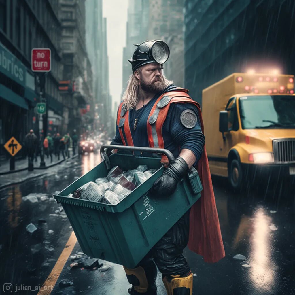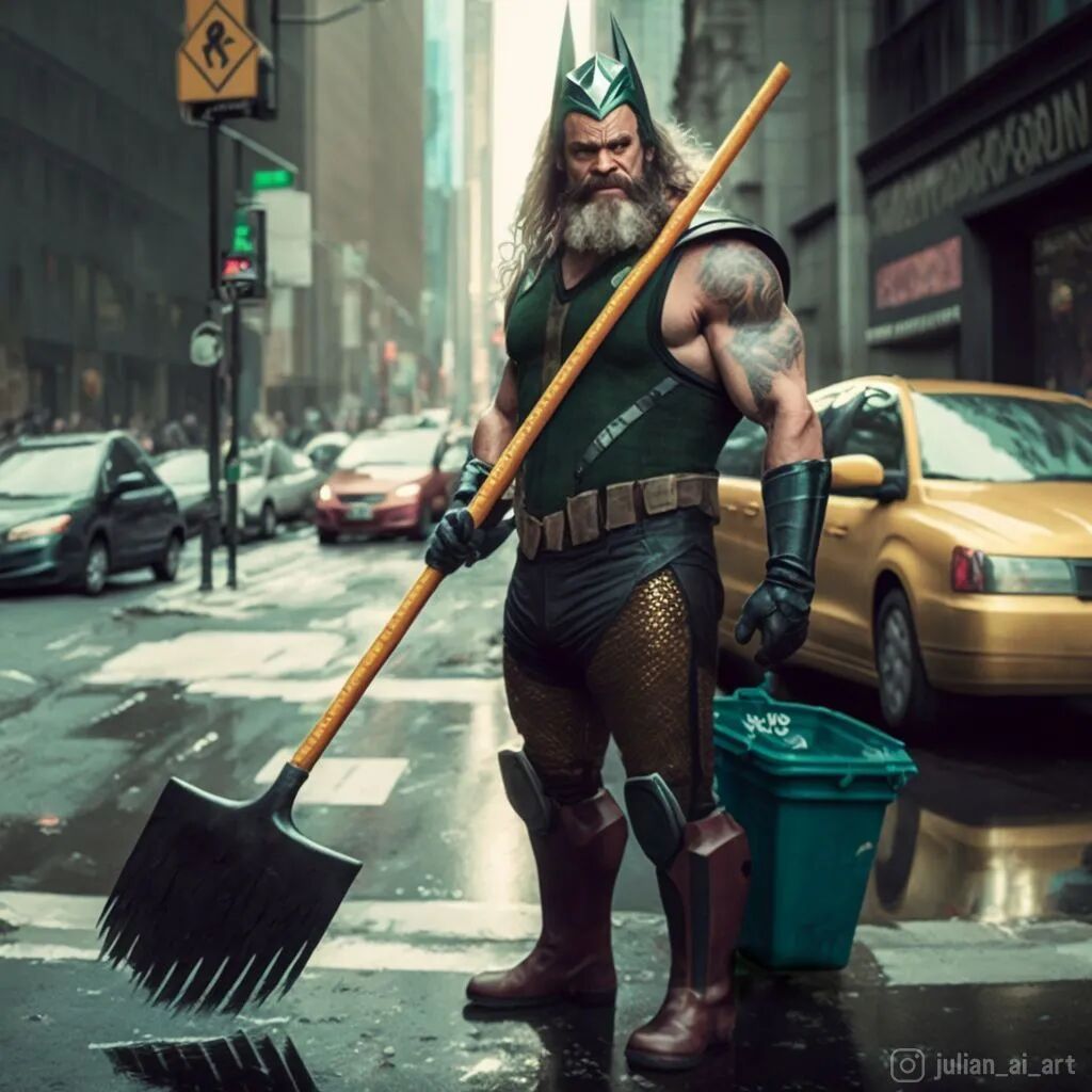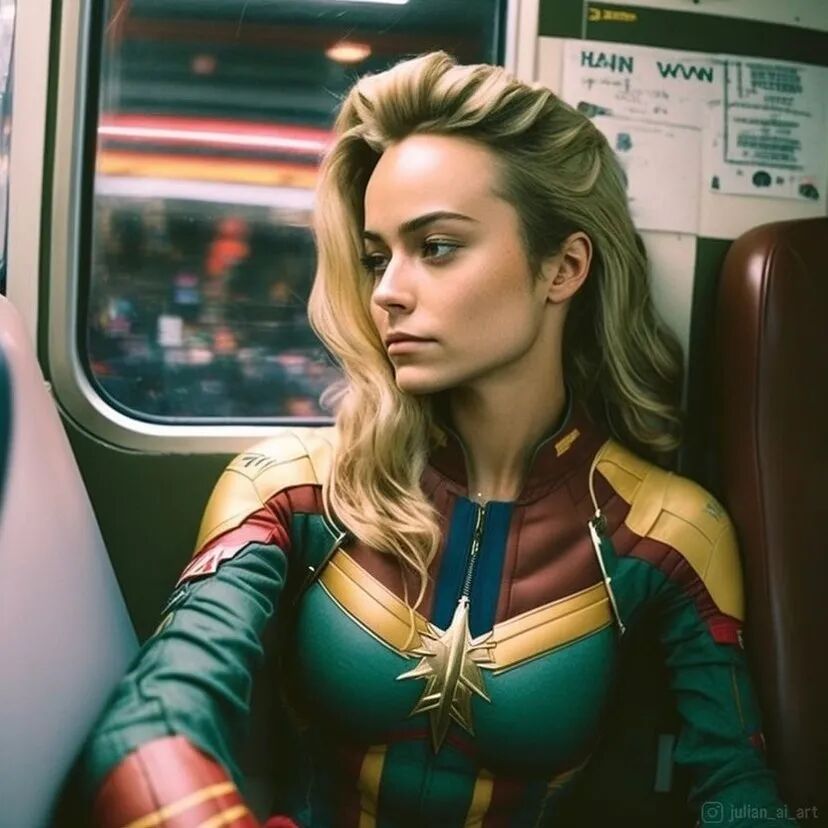 朱利安·范·迪肯也感叹人工智能绘画强大的力量,于是,他利用人工智能生成了一组十分有趣的图像,这些图像的原型来自影视作品中的超级英雄,通过文字描述,朱利安·范·迪肯将这些超级英雄从拯救人类的位置拉了下来,将他们变成了一个个普通人,似乎说明了在人工智能面前,即使是超级英雄也十分无力。