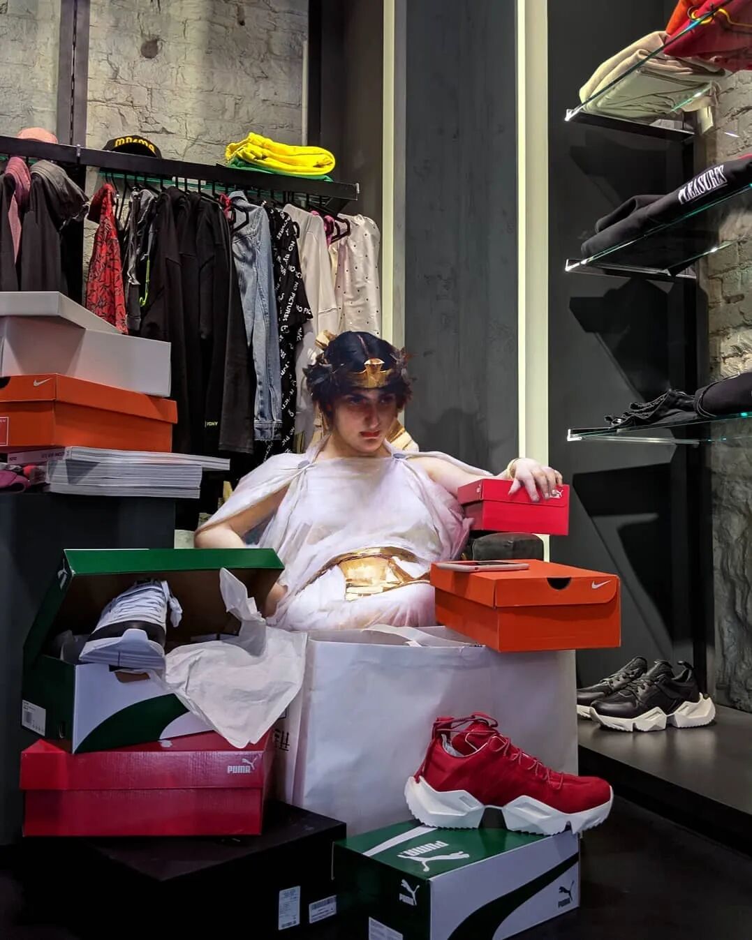 不得不说,这组作品被阿列克谢·康达科夫绘制得毫不违和,即便看上去再高贵典雅,来到现代也免不了柴米油盐的平凡生活,给人一种“仙女坠入人间”的感觉。