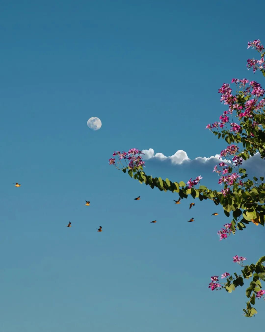 云彩本身就自带浪漫属性,在金康熙的创意下,这些云彩融入到我们的生活中,似乎它变成一个有形的物质,可以被我们的双手触摸到,除了云彩之外,月亮和椰子树也是她的灵感源泉,每一幅数字作品都给我们带来空灵舒适的感觉,看到这些作品仿佛浮躁的内心,都会慢慢安静下来。