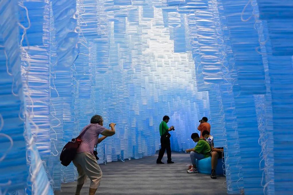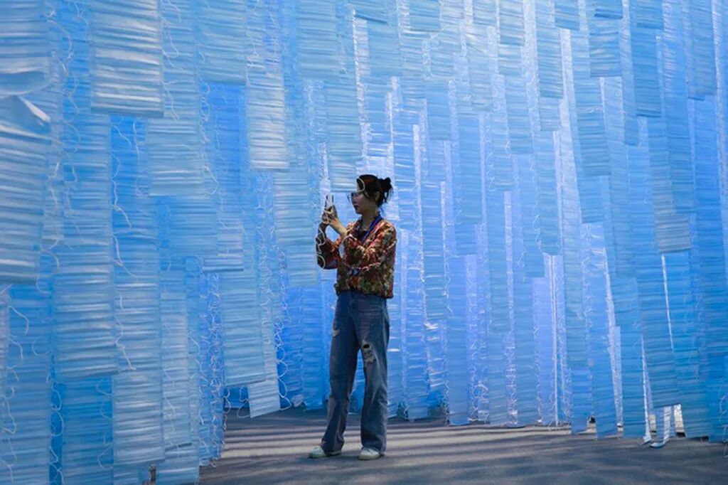 这个耗费117539个口罩制作的巨型装置艺术,在国内并没有引起太多的关注,反而在国外受到许多人的热议,相信我们很多人都是第一次看到这个装置艺术。