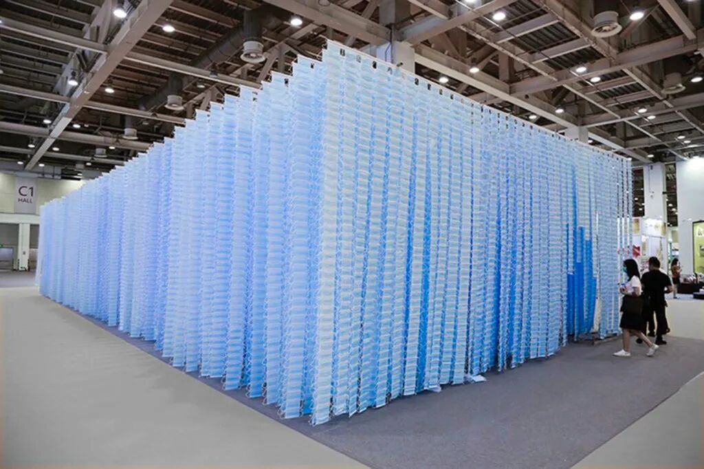 需要说的是,这组装置艺术是在今年的7月31日,于苏州国际博览中心举行的第九届苏州文化创意文化产业博览会中进行展出,在展出众多作品中,这个名叫《面对面》的装置艺术最为特别,首先,因为这个装置艺术真的非常庞大。其次,是因为这个装置艺术选用的材料,是我们非常熟悉的口罩。