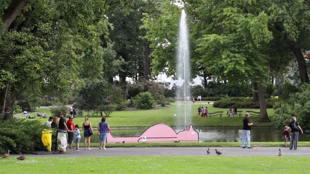 这些雕塑作品有着简单的色彩,轻快的线条和有趣的形状,每一个雕塑作品都是由一个或多个卡通小人组成,这些雕塑小人或躺、或坐、或三五个相拥在一起,每一个雕塑作品都吸引许多人合影留念。