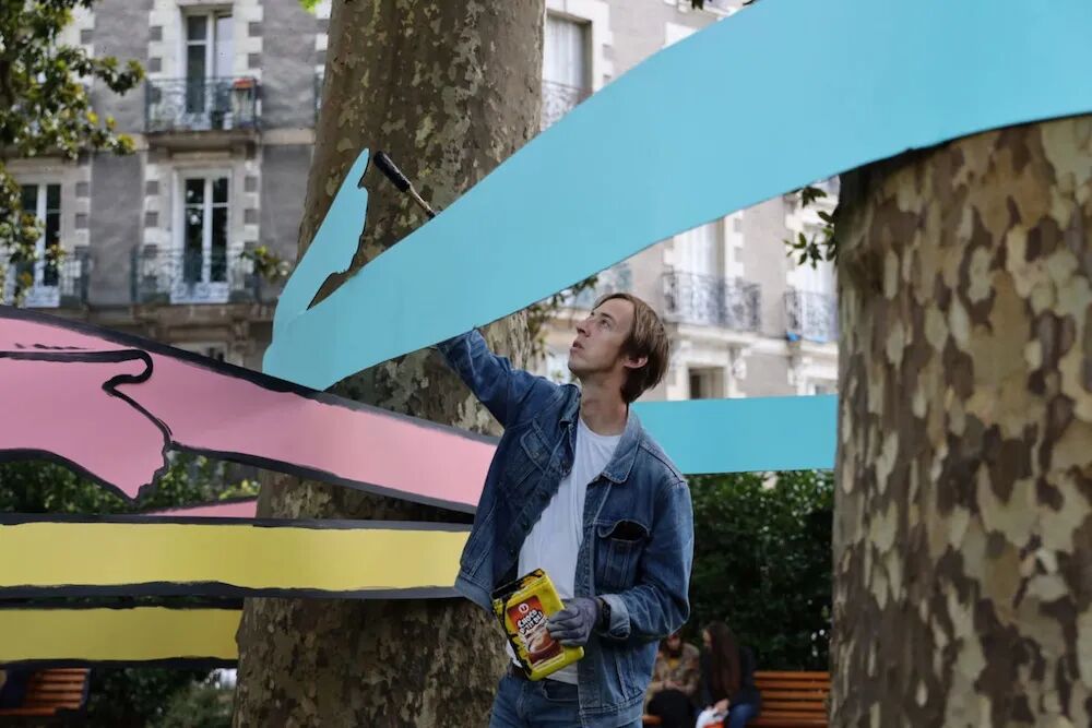 让·朱利安的简约雕塑作品,制作起来也非常简单,只需要一块泡沫板,进行简单的切合后,再涂上鲜艳的颜色,最后再用黑色的油漆将周围勾勒一下就可以完成。
