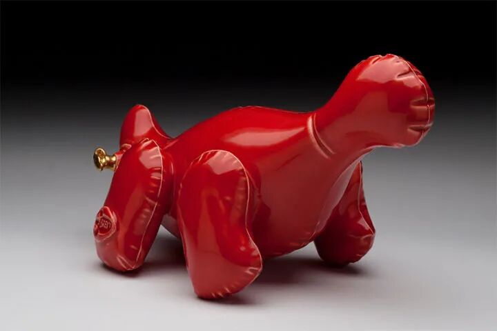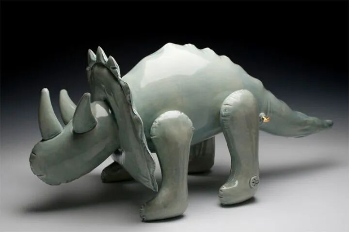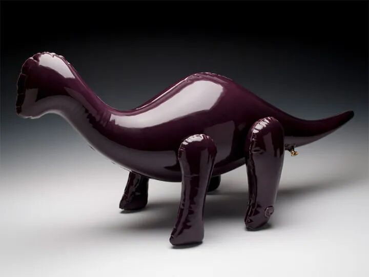这些富有创意和想象力的陶瓷玩具,被布雷特·科恩仿制到淋漓尽致,我们甚至可以看到每一个陶瓷作品上的充气口,还有每个连接部位的褶皱,这样有趣的陶瓷作品是不是也让你眼前一亮呢?