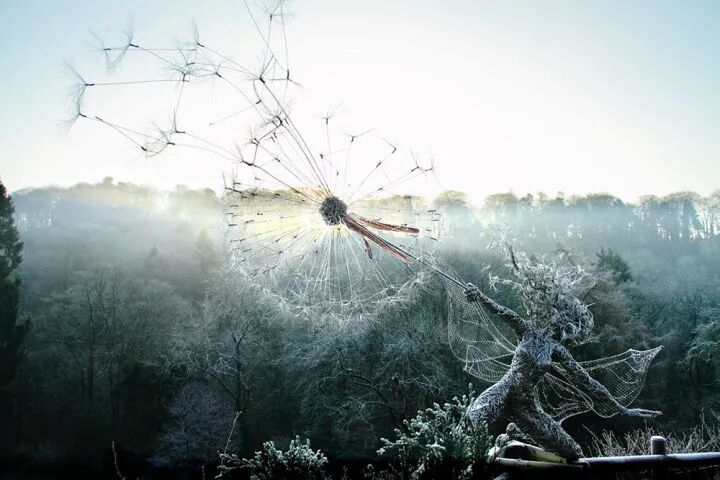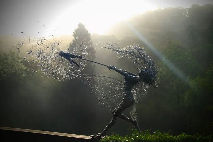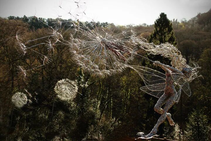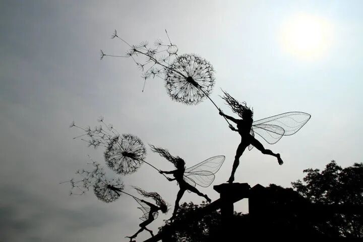 事实上,除了这幅用力挥舞蒲公英的精灵雕塑作品之外,英国的艺术家罗宾·怀特还以这个主题创作了许多座十分精彩的雕塑作品,每一座雕塑作品,都不逊色于走红的那个蒲公英精灵。