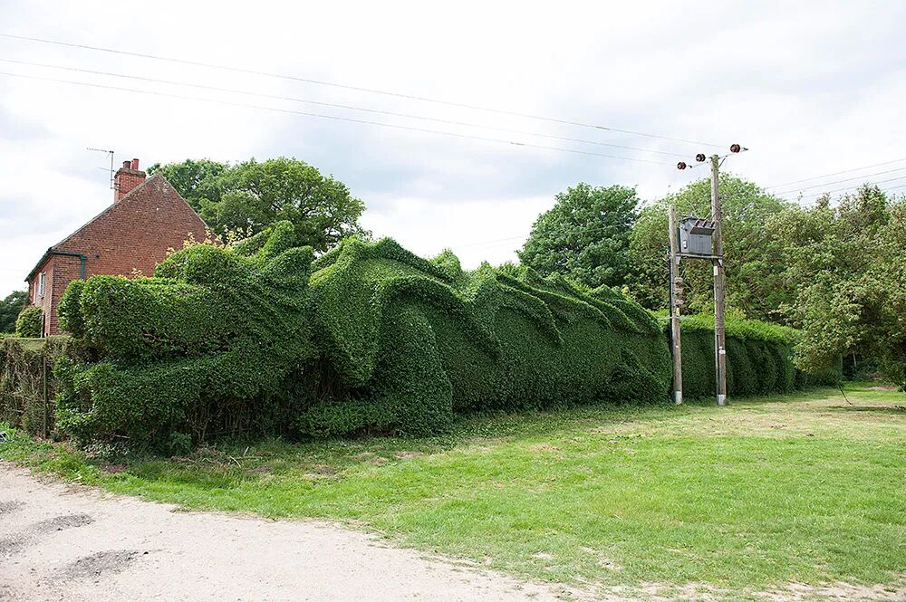 非常值得一提的是,约翰·布鲁克用漫长的时间去改造屋外面灌木丛,并不是为了出名,仅仅是让自己感觉到舒服,如果不是一位偶然路过的摄影师拍摄下了这组照片,我们至今都不会发现,一位老人用十几年的时间将45米的灌木丛,变成一只绿色的巨龙。