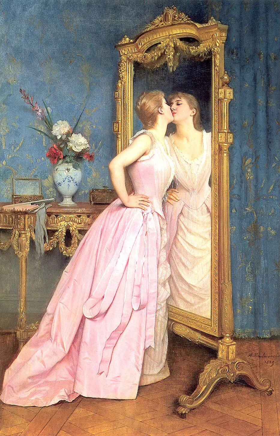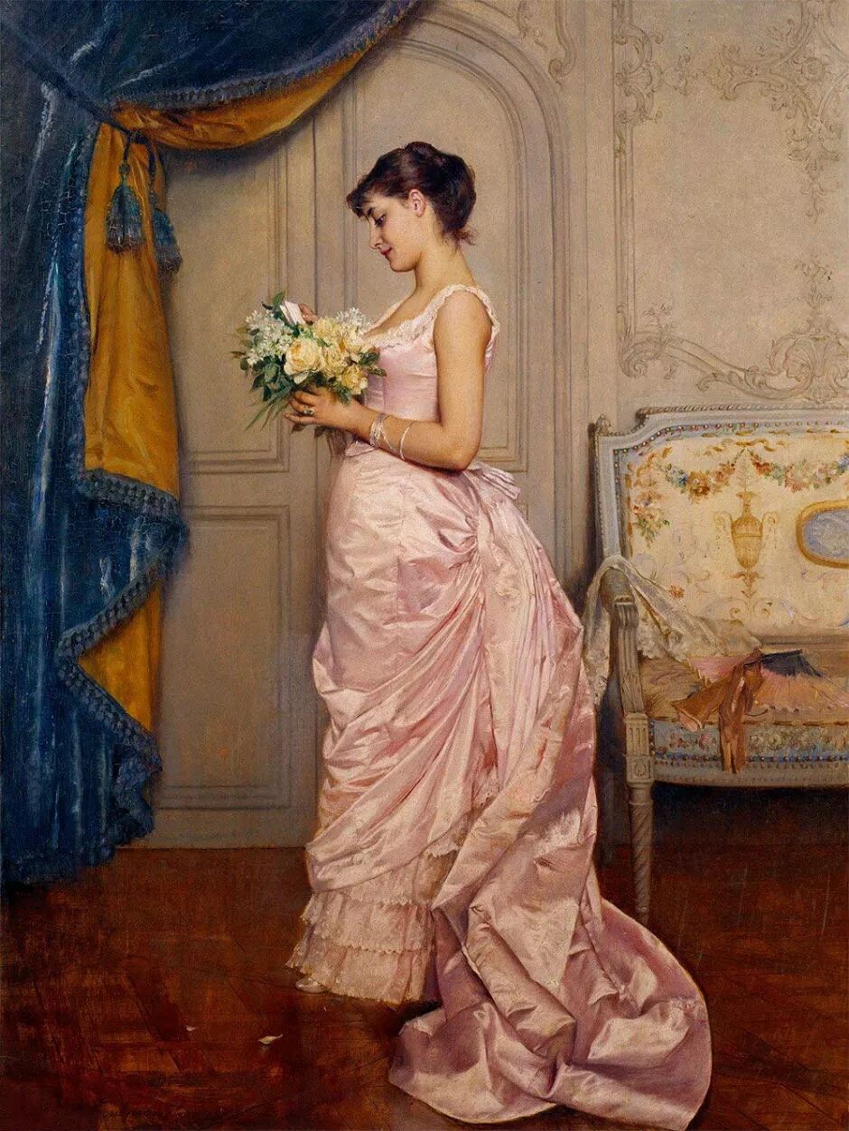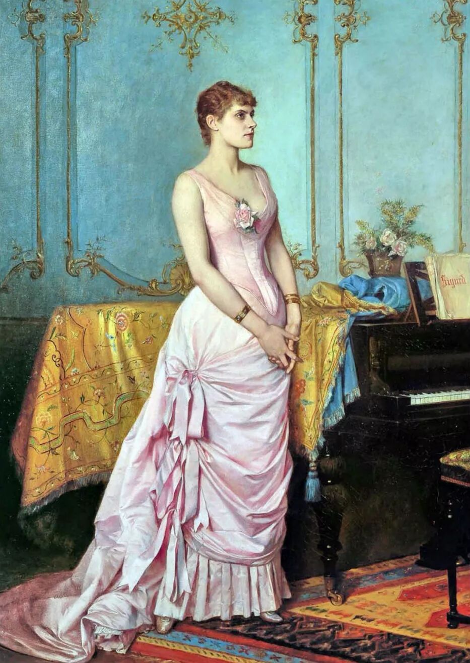 著名的法国画家奥古斯特·图尔穆奇,是一位专注绘画巴黎优雅女性的画家,在他的作品中,我们可以看到一个明显的特质,那就是在画面中的女性人物,绝大多数都是侧脸对着观众。