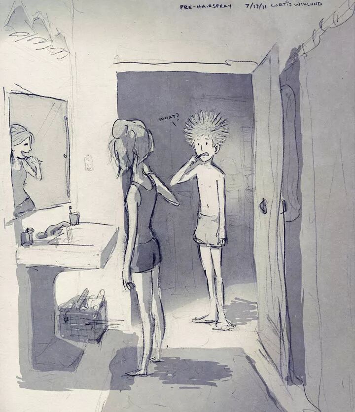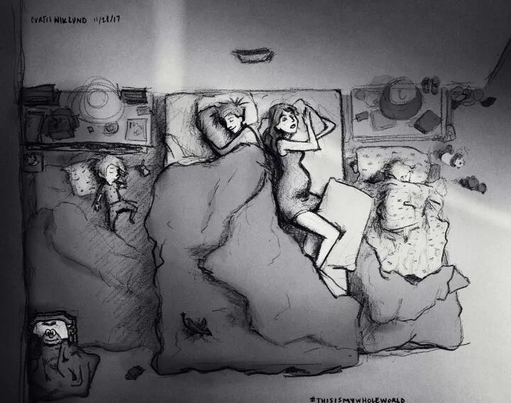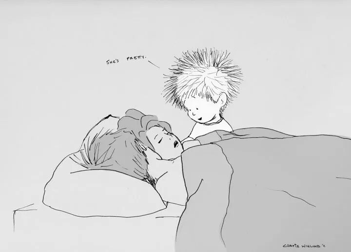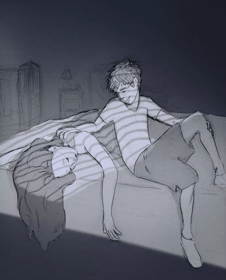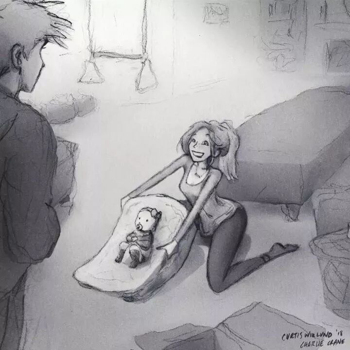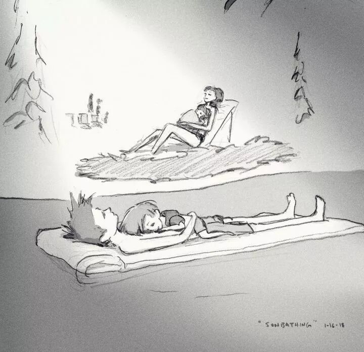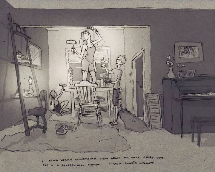 这位画家名叫柯蒂斯·维克伦德,从几年前,他就开始日记般的创作,每天都会用画笔描绘出两人的生活。从两个人相爱,到孩子的出生,一幅幅画作像是一个个美好的回忆,这就是属于画家的浪漫。