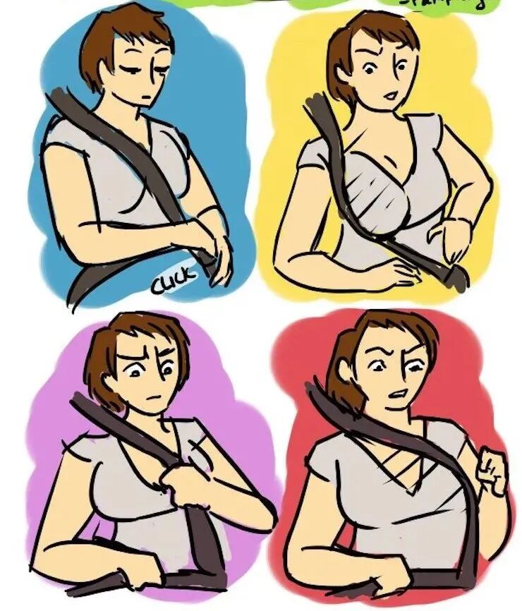 5、胸部太大的女孩在系上安全带时