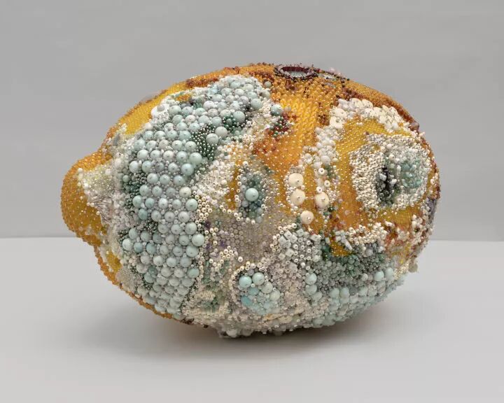 在美国就有这样一位名叫凯瑟琳·瑞安艺术家,她用各种宝石制作成一个个发霉的水果。谁也无法说清,这个作品究竟是美丽还是丑陋。