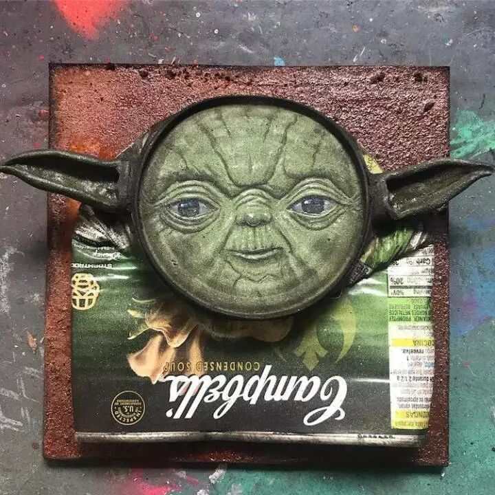 这位艺术家名叫My Dog Sighs,他画画的地方就是垃圾罐的瓶底,就是我们常常丢弃的垃圾,在他的手里变成了艺术品,这些作品让许多人都非常惊讶,原来还可以用这些东西作画。