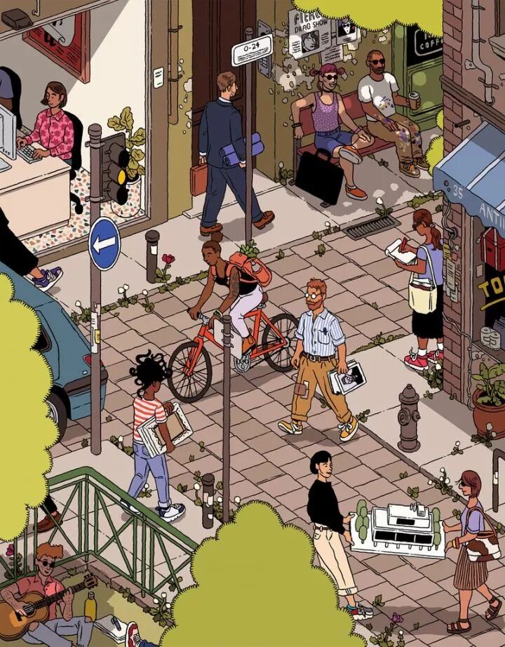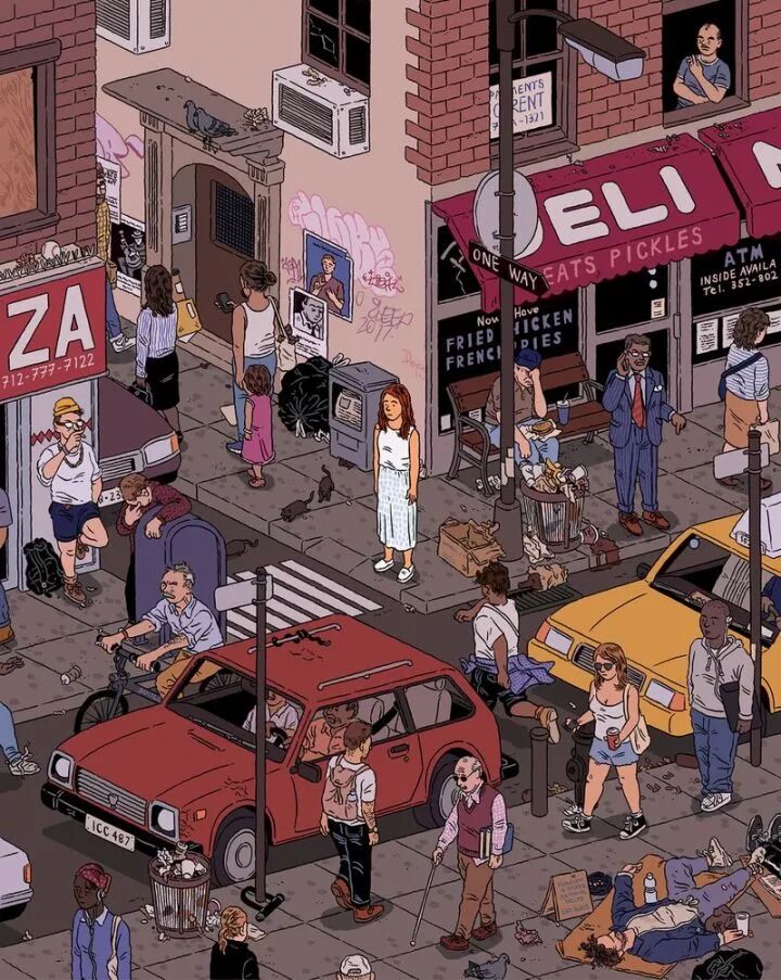 伊利亚·米尔斯坦的插画作品多数是街景,每个街道上都有各色的人物,他们像是我们平常看到的场景一样,但是,看似平常的插画作品,往往藏着许多有趣的地方。