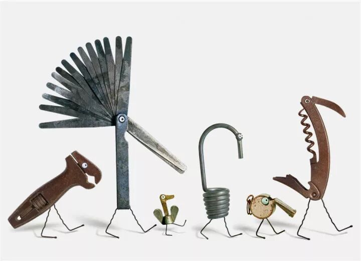 在吉尔伯特·莱格朗的作品中,我们可以看到生锈的剪刀、废弃的螺丝,甚至一片发黄的书页,就是这些我们当成垃圾丢掉的东西,成了吉尔伯特·莱格朗的艺术材料,通过吉尔伯特·莱格朗的想象力与创造力,赋予了这些废弃全新的生命。