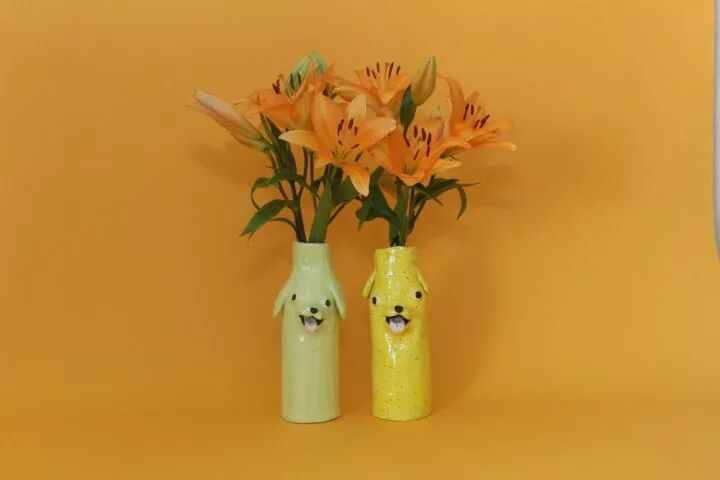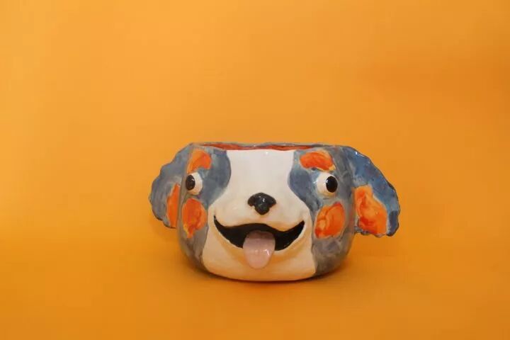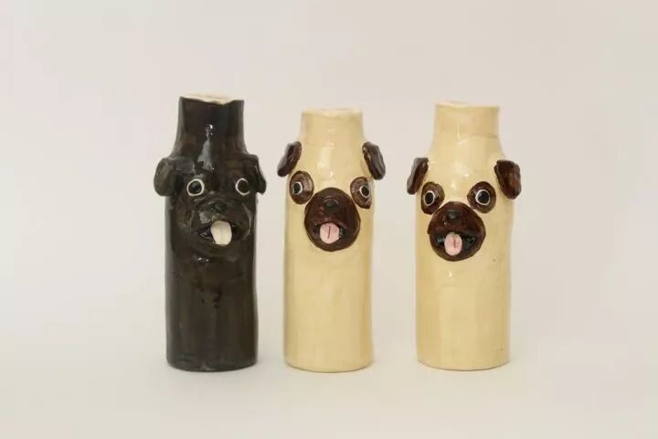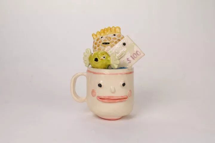 在各种物体上,加上两只大大的眼睛,咧开微笑的嘴巴,一个丑萌的陶瓷作品就这样诞生了,凭借这些作品,凯蒂·金梅尔收获了许多追随者,她的作品也越来越受到更多人的欢迎。
