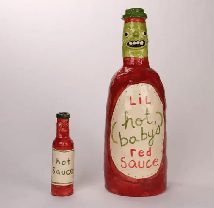 尤其是在陶瓷制作上,凯蒂·金梅尔可以肆意发挥自己的艺术天赋,她的陶瓷作品似乎可以把所有物体赋予上生命,各式各样的瓶子,不同种类的水果,甚至连一块培根都活了起来。