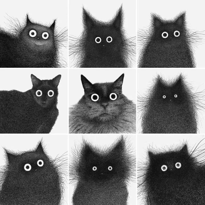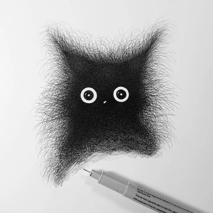 当然最具代表性的就是,路易斯·科埃略的小黑猫系列作品,这只小黑猫几乎所有喜欢浏览互联网的人都一睹过它的样貌,被这只小黑猫圈粉的人也不计其数。