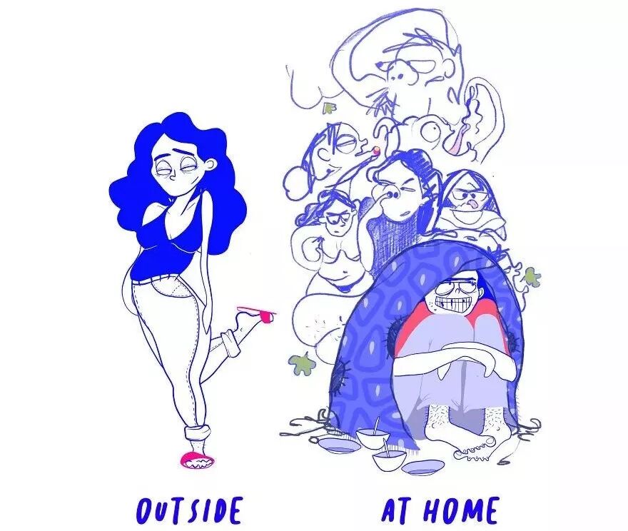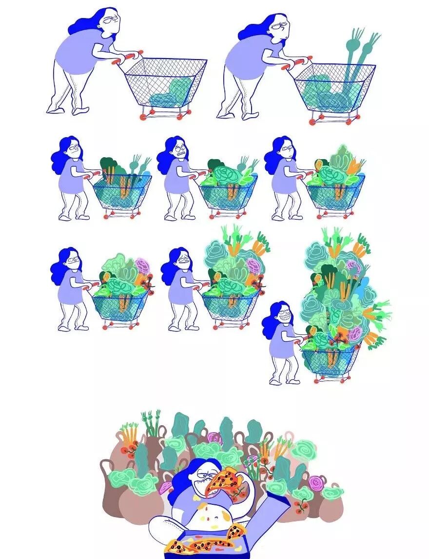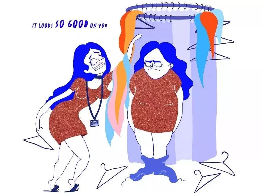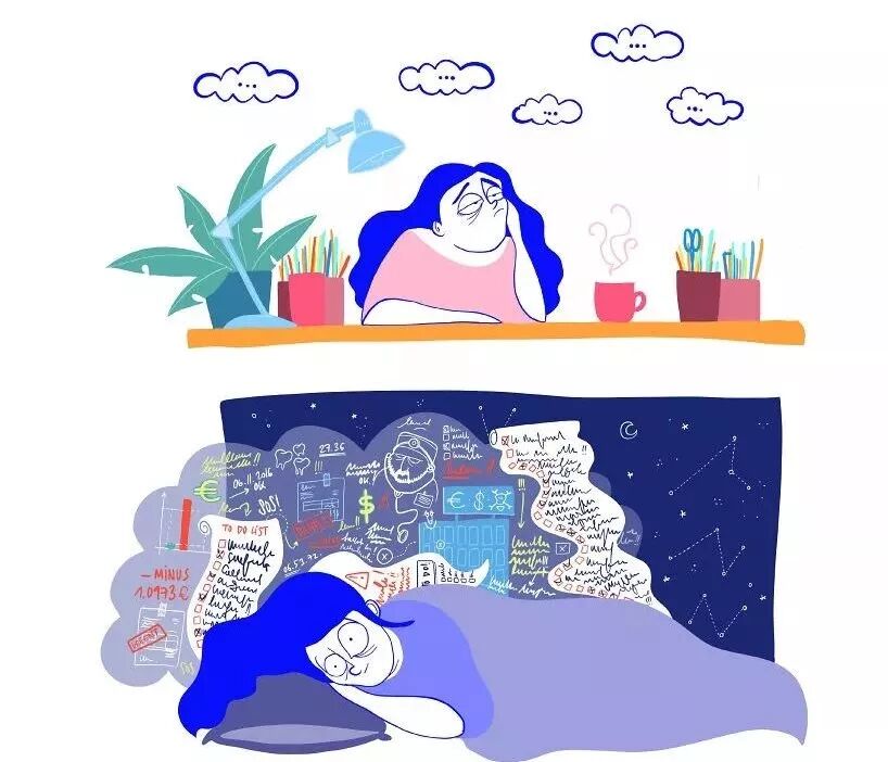在广大直男的心中,这确实太难理解了,法国插画师雷切尔·列夫认为,很多女性容易想太多的根源,还是源于不自信,害怕被嘲笑的心理。于是他以年轻女性的生活为灵感,创作了一组带有幽默色彩的有趣插图。