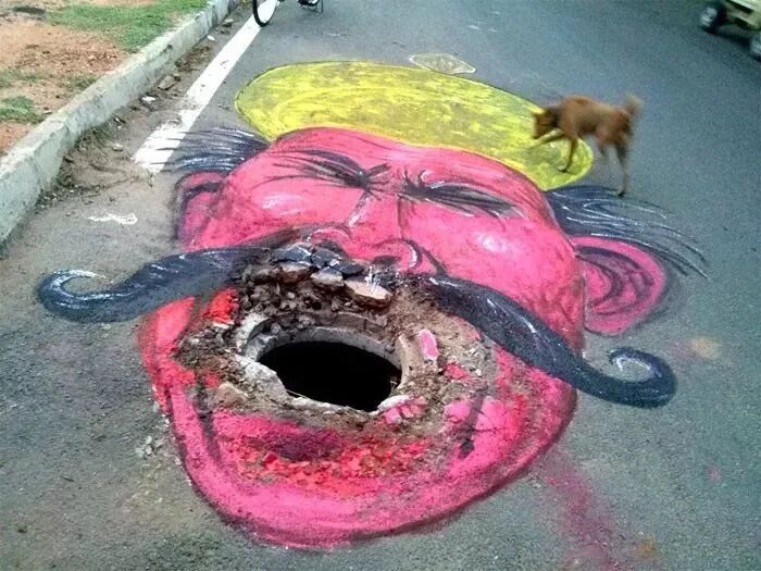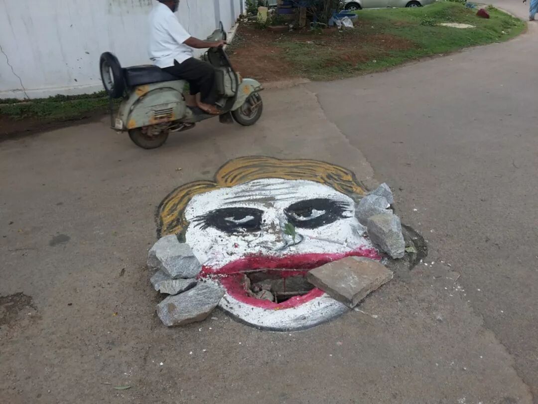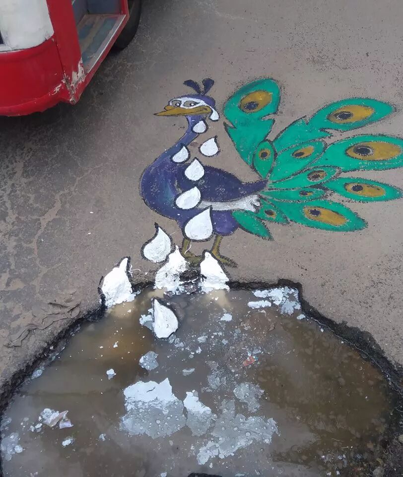 可怜的印度人民只能靠感觉,来判断路面是否平整,这一现象一直没有得到足够的重视,直到一位调皮的街头艺术家的出现,才引起了社会各界和当地政府的巨大关注。