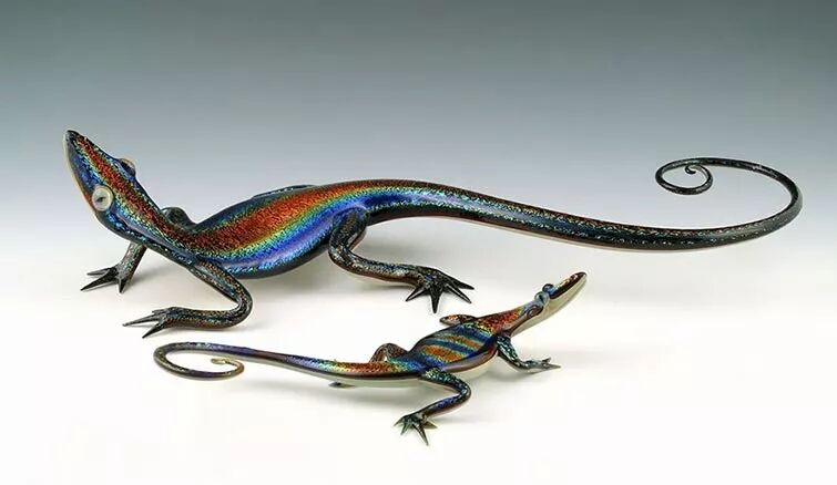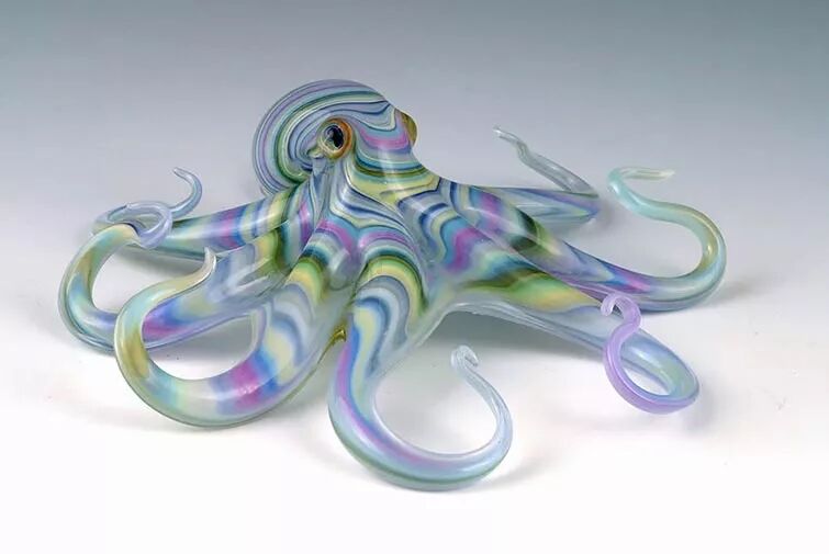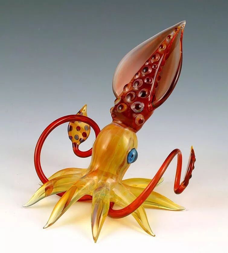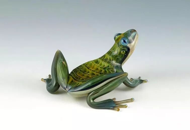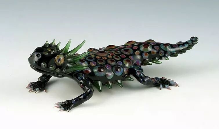 最终他也确实如愿,创作出的玻璃雕塑艺术品得到了认可。刚才上文油画酱说到,玻璃雕塑很难,尤其是各部位的拼合,十分考验艺术家的手上功夫,而斯科特的作品大多是水生动物、两栖动物,拥有精致的头部和四肢,要想将它们吹制得生动形象,更是难上加难。