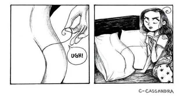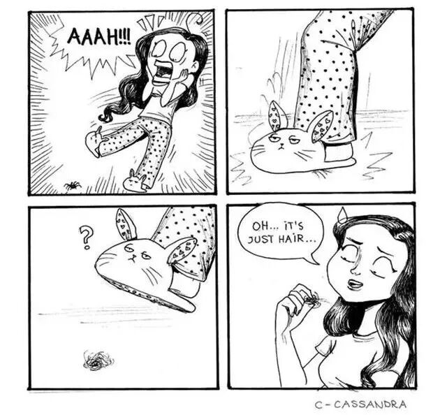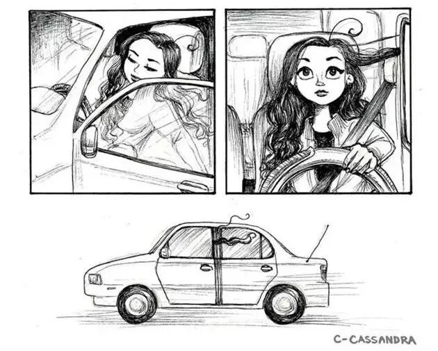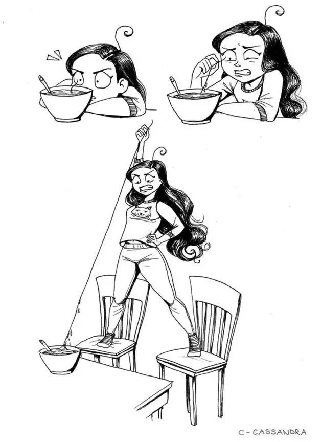 罗马尼亚的美女漫画家卡桑德拉·卡林对此可是体会颇深,因为她本身就留了一头长发,她通过一组插画,描绘了长头发对自己的生活造成的那些不便,以及各种麻烦事儿,切身体验,可以说非常真实了。