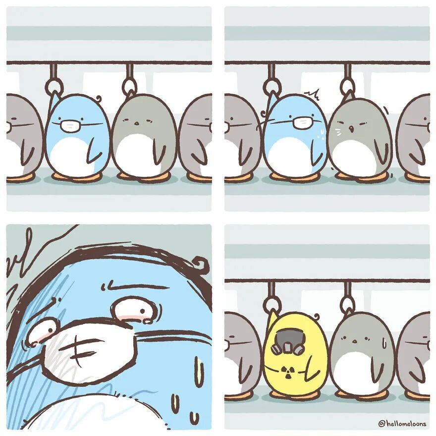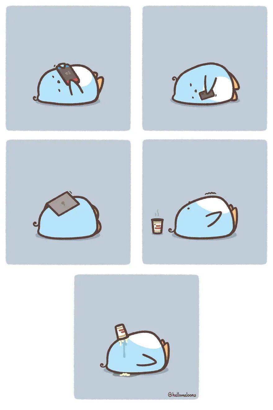 在他的画中,可爱的小企鹅被赋予了人的属性,工作、生活的状态像极了平凡的我们,蠢萌搞笑的日常,让人很难不联想到自己,或者自己身边的朋友。这只小企鹅害羞、敏感,有“社恐”,爱独处。它也有自己的小伙伴,有自己的小热爱。在它的人生中,也有自嘲、有欢乐、有困难、有曲折,它的生活,仿佛就是我们正在经历的人生。