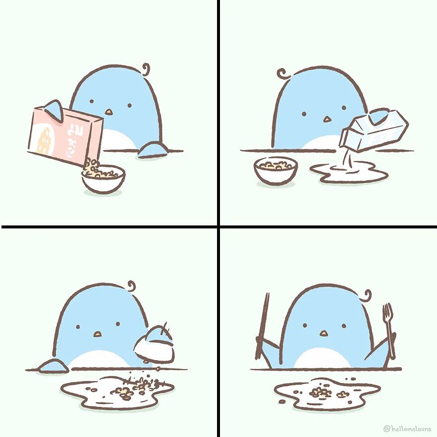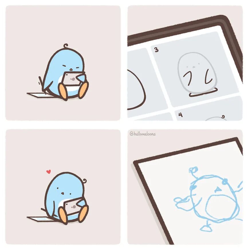 如今,凭借这只蠢萌的小企鹅,大卫在社交网络上已经收获了一大批粉丝,他们对作品的认可和热爱,是这位艺术家一直前进的动力。接下来,我们就一起欣赏一下这位艺术家创作的趣味插画,跟随这只小企鹅,感受跌宕起伏的人生吧。