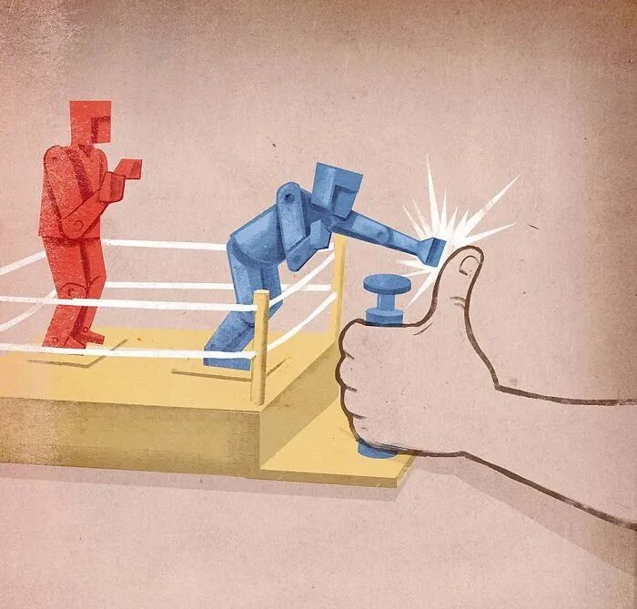 许多插画家都会选择讽刺性插画作为一个绘画题材,很少有插画家一直从事讽刺性的插画绘制,主要是因为,讽刺性的插画并不容易绘制,每一幅作品都有固定的主题和自己的感悟和理解,也可以说,讽刺性的插画是一位插画家过往的经历与价值观的凝结。