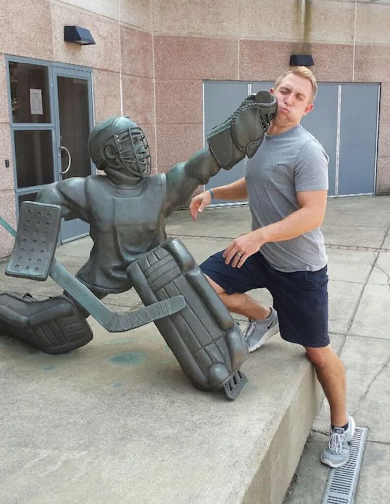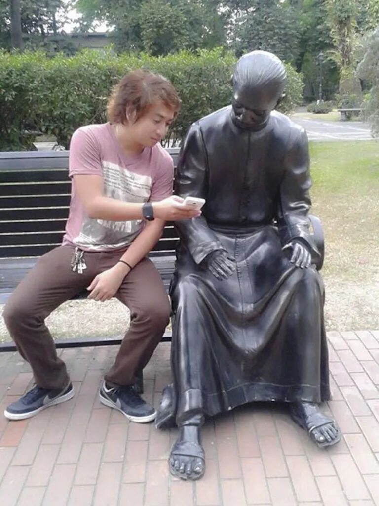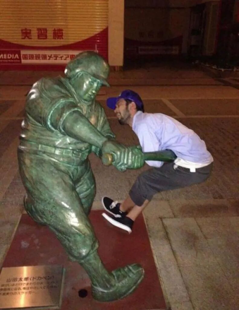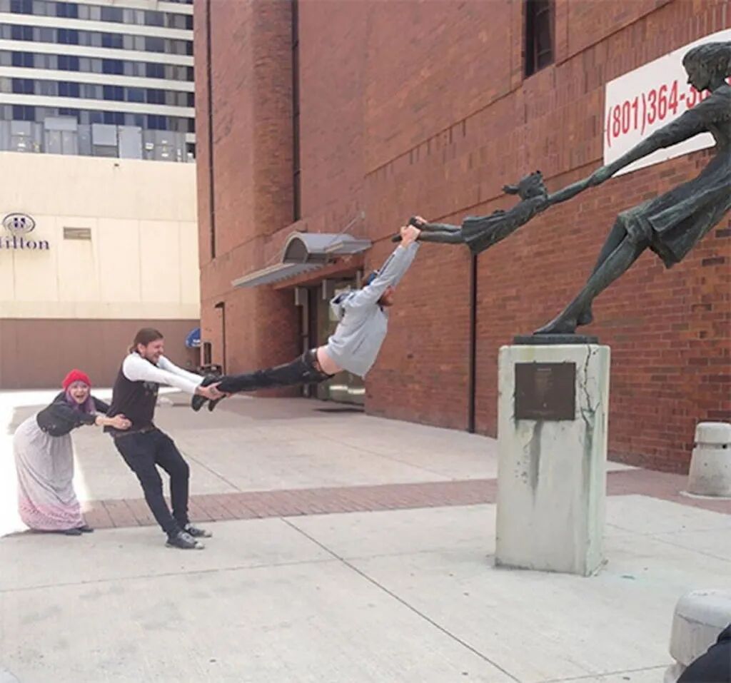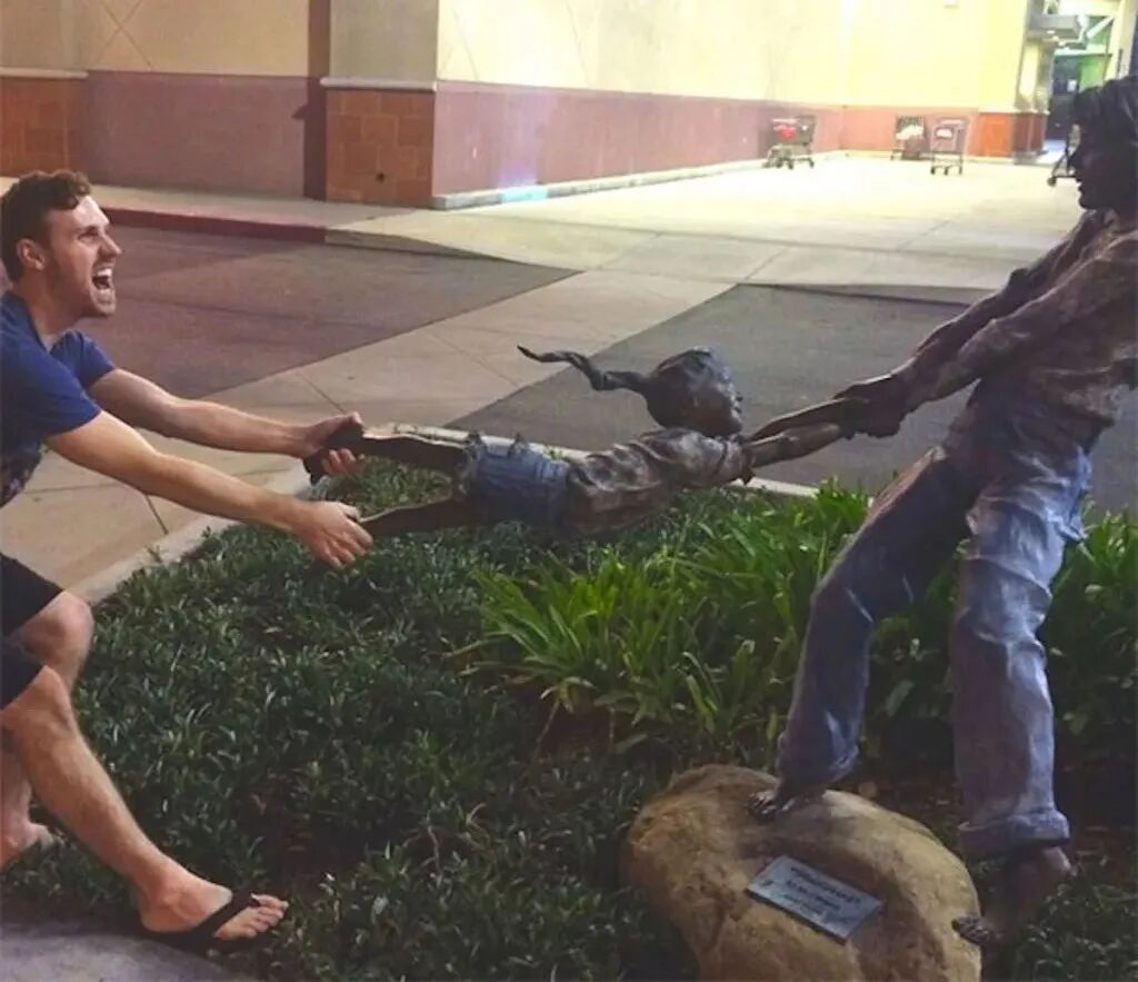小绛相信,很多人都有和雕塑作品合影的经历,追求个性和特别的年轻人,即使在和雕塑拍照的时候也要搞起怪来。在之前,小绛也和大家一起看过许多有趣的人,在和雕塑合照时,拍出让人捧腹大笑的照片。