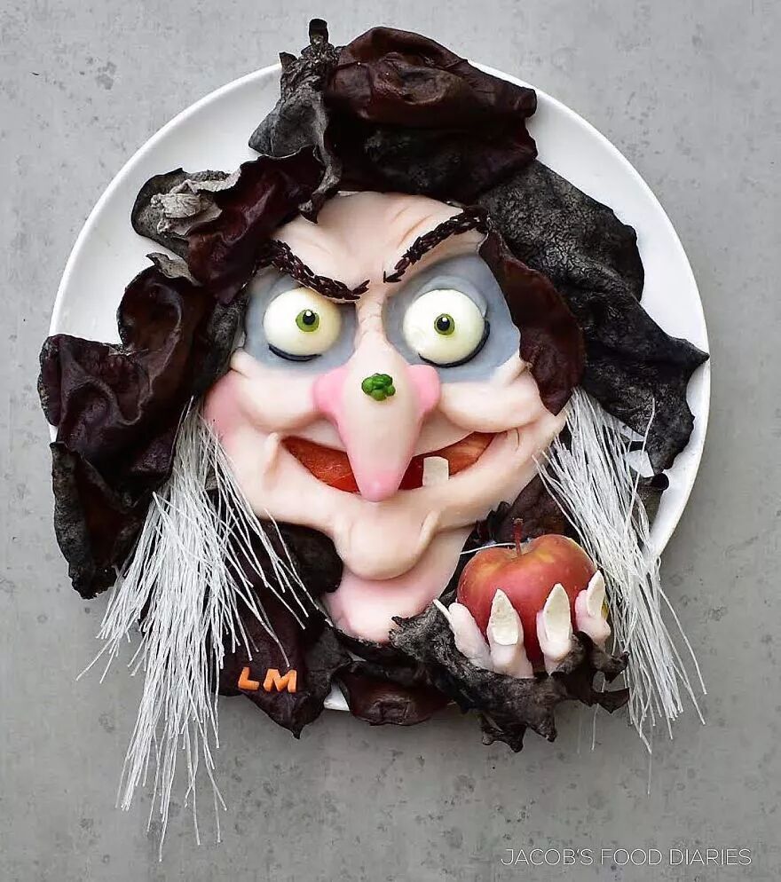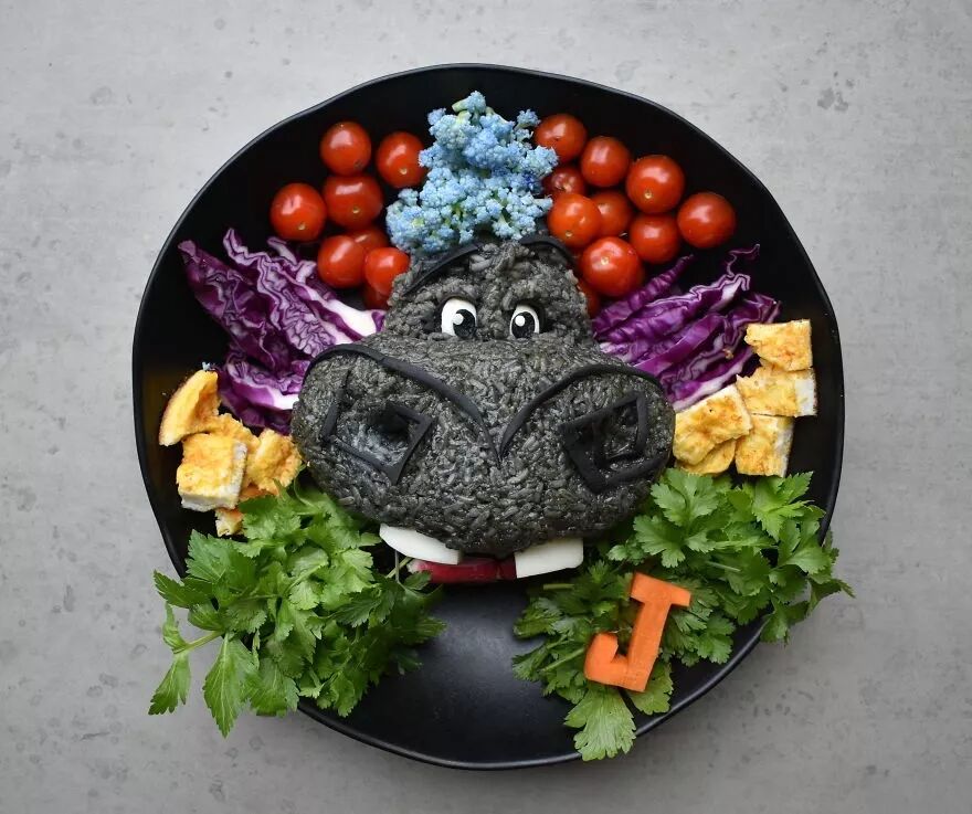 国外一位艺术家拉勒,同时也是两个孩子的妈妈,便早早解决了喂饭的难题,她知道孩子喜欢鲜艳的颜色,同时她还知道,动画角色更能引起他们的兴趣。于是,拉勒开始着手创作,将各种食材加工成了艺术品。