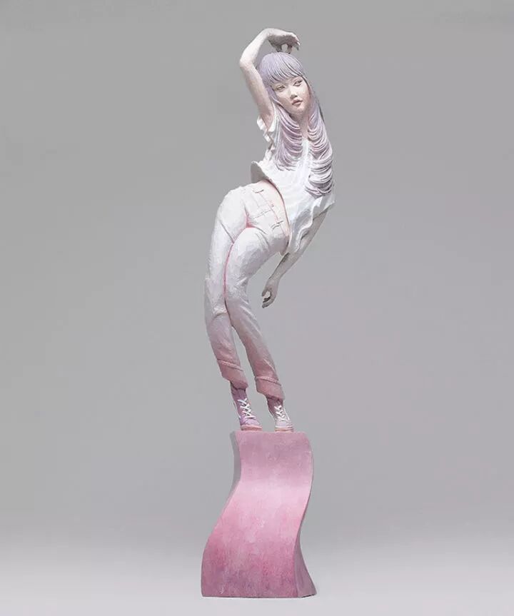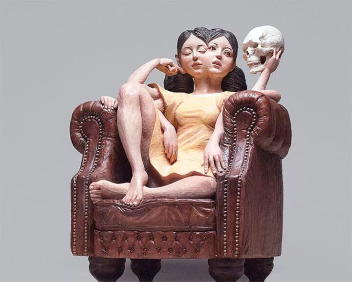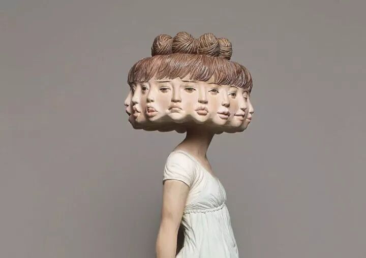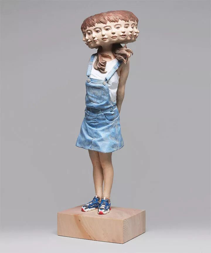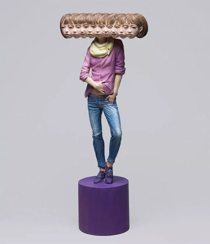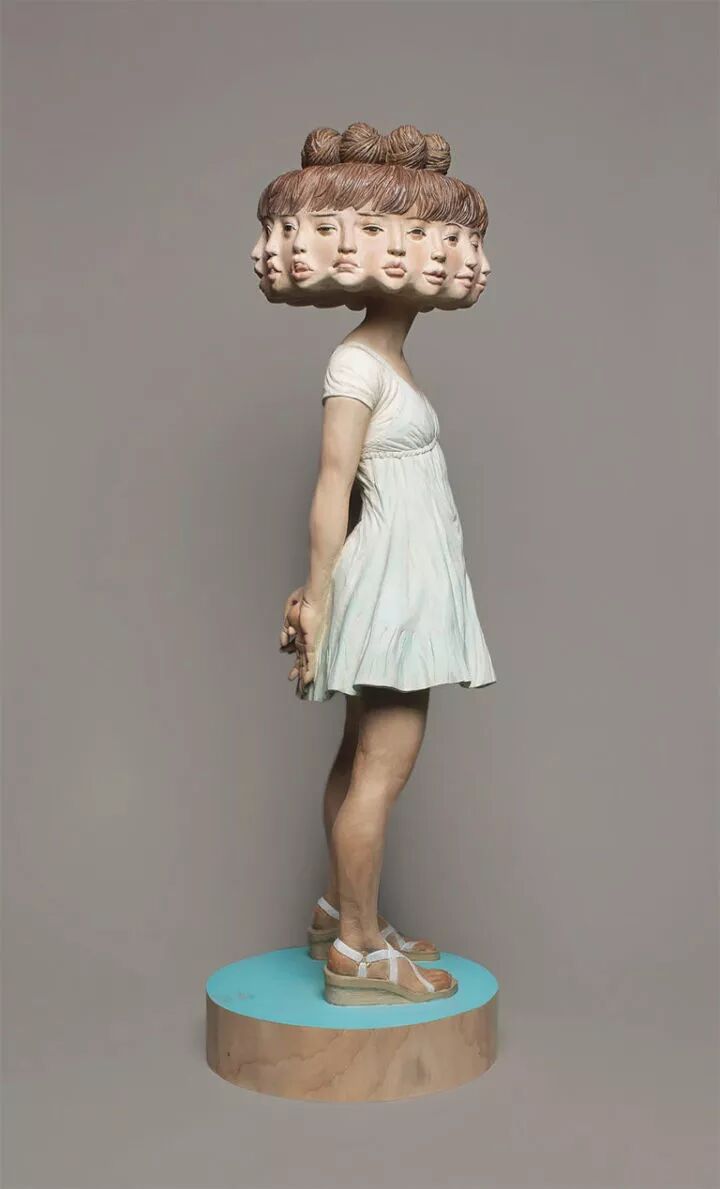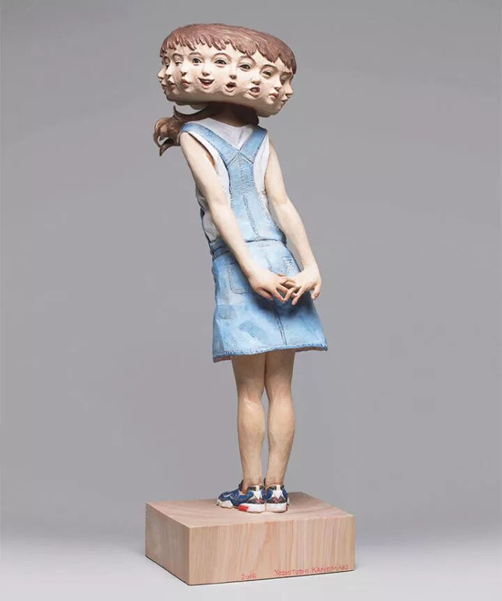 在日本就有一位非常著名的雕塑艺术家叫做金木义俊,他的雕塑作品主要以人为原型,却将人物角色全部抽象化,这种创作方式令这些雕塑作品更富有趣味性,比如,一个女孩的身体,金木义俊将她的面孔雕刻出十几个,像是在表达无法琢磨的女孩心思。