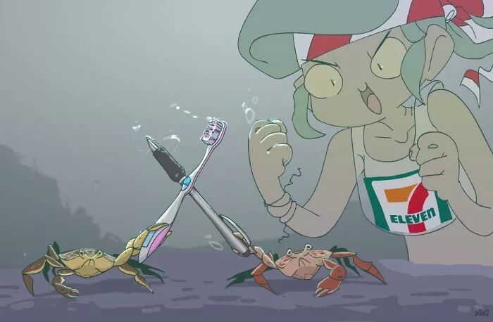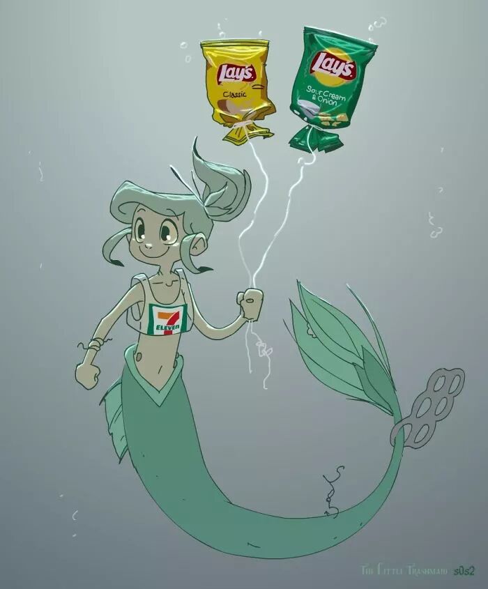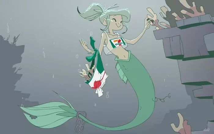 赫耳墨斯创作的现代版美人鱼,以一种既准确又令人悲伤的基调,巧妙地展现了人类对海洋造成的污染,以及对海洋生物造成的伤害,艺术家的意图,相信你每一幅都看懂了,一起欣赏一下吧。