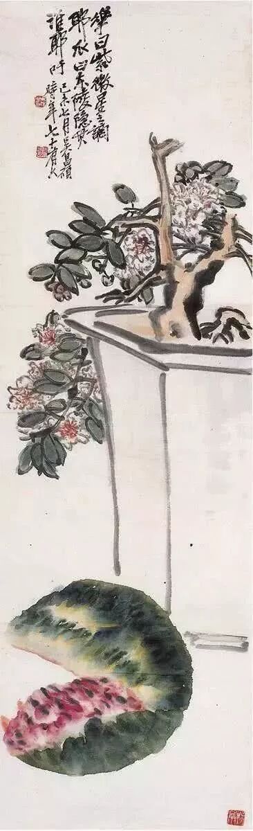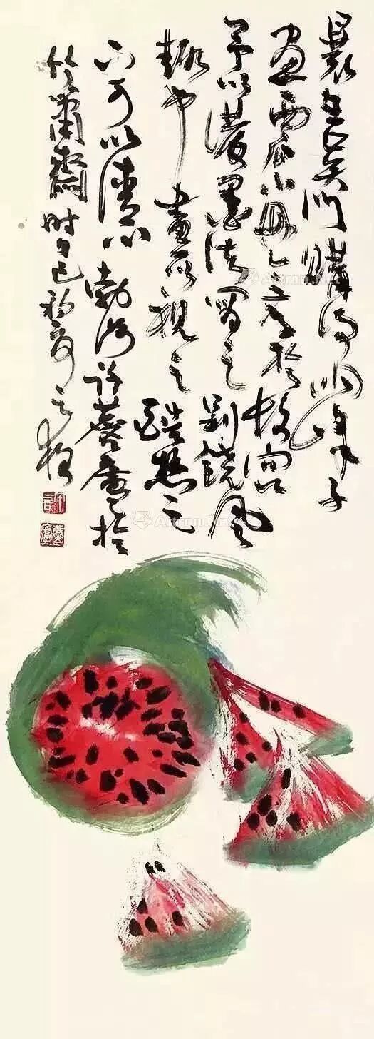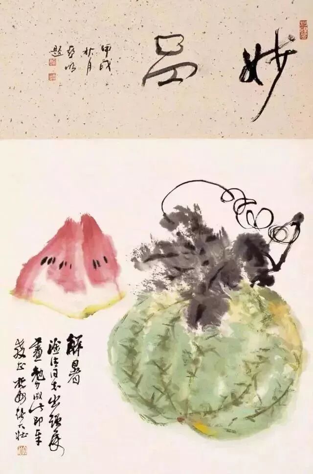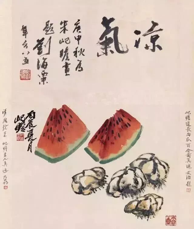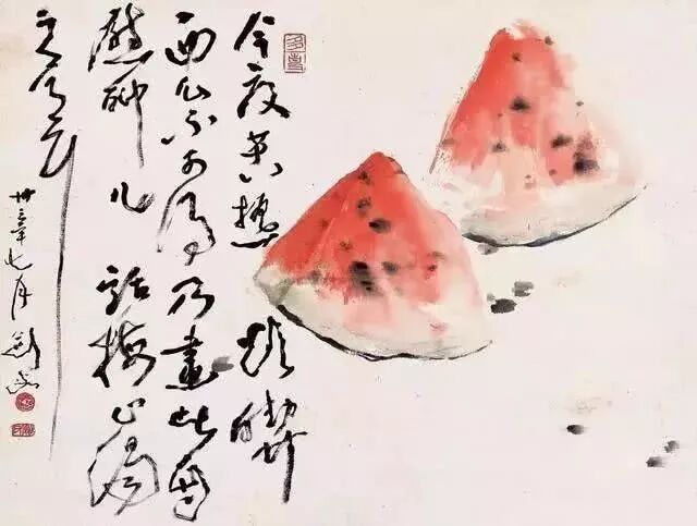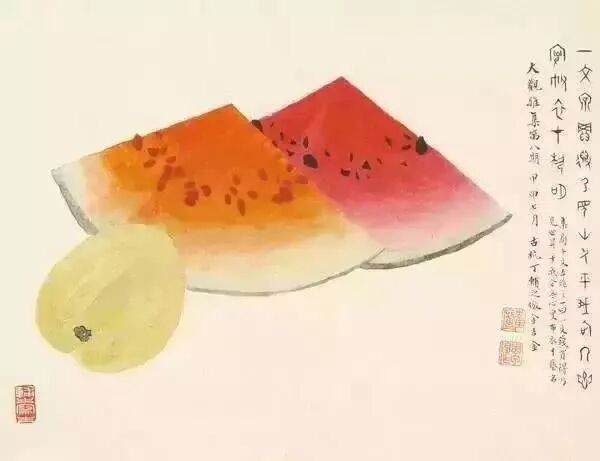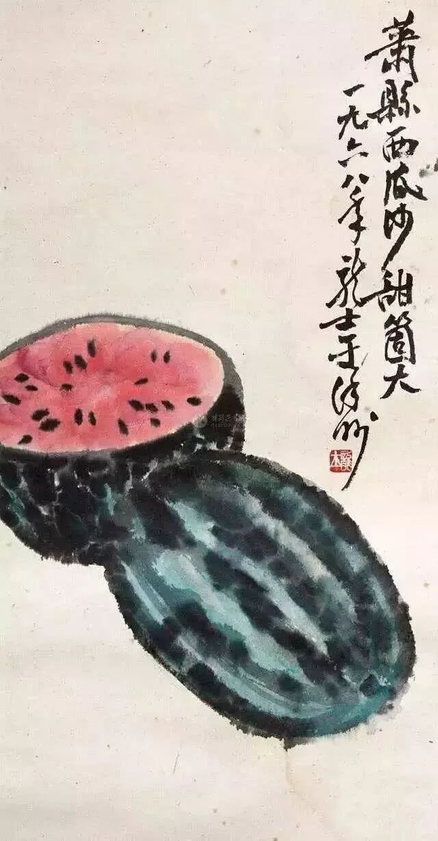 大家都知道齐白石虾画得好,知道他擅长画花鸟鱼虫,山水人物,却不知道他的西瓜画得也是相当生动。齐白石的画笔墨浑厚,造型简练,生动至极,看过他的西瓜图你就知道了。