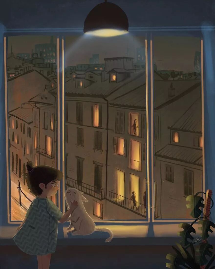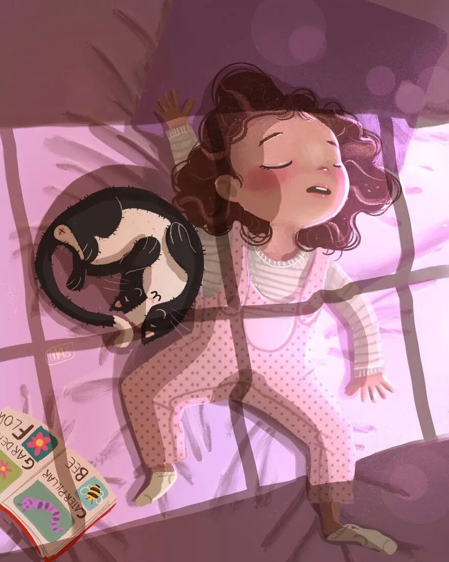 有猫咪的陪伴是件多幸福的事儿呢?油画酱也没办法用语言表达清楚,但是意大利插画家玛格丽塔·格拉索却用插画的形式表现出来了,从她的画中,我们能感受到那种暖暖的幸福感。