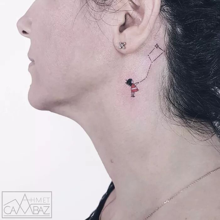 其实纹身能够选择的部位很多,我们经常见到,比如脚踝、手臂、后背等等。今天油画酱要跟大家分享的,是一组纹在脖子附近的创意纹身,不仅个性,还有点酷酷的,一起欣赏一下吧。