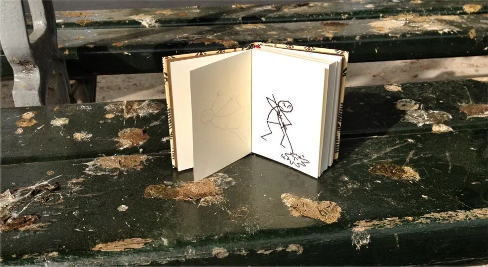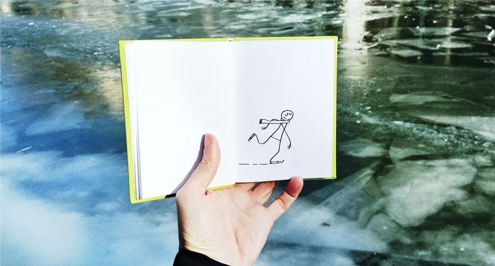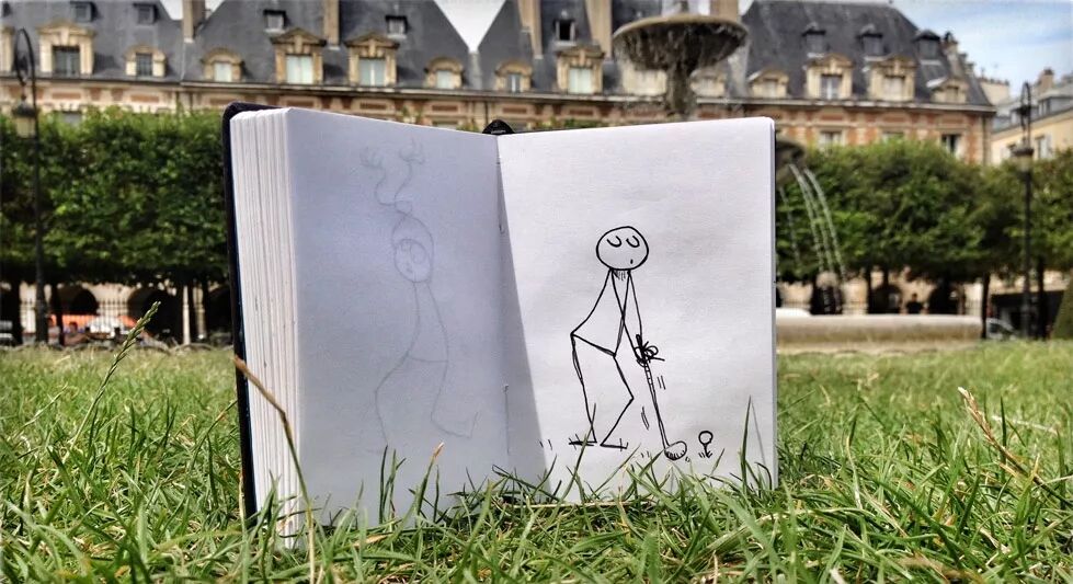法国一位艺术家Yacine Ait Kaci就带着他的速写本high了起来,他为自己的“爱本”起了名字,还带它去“环游”。