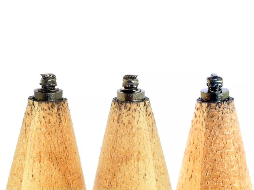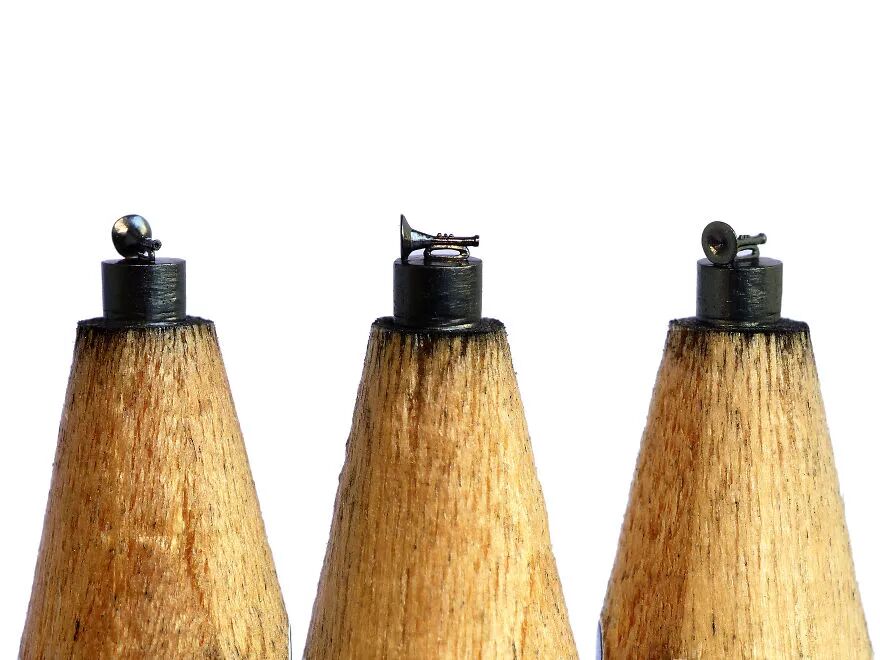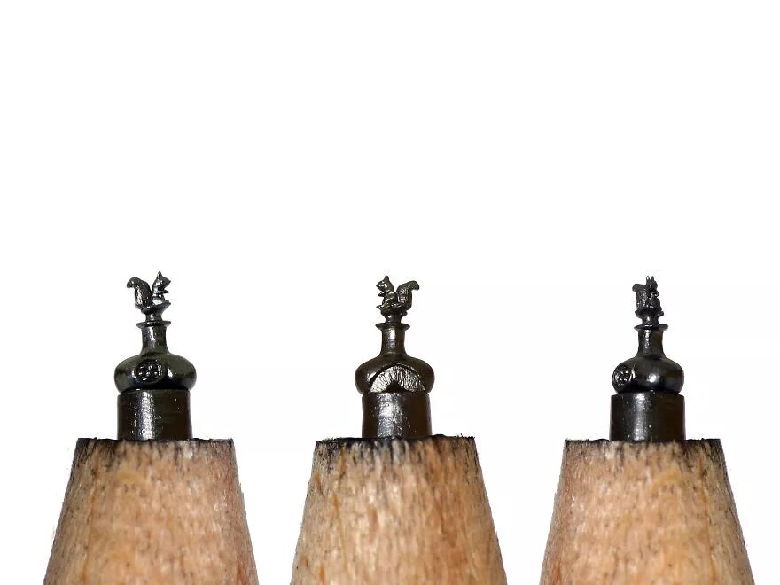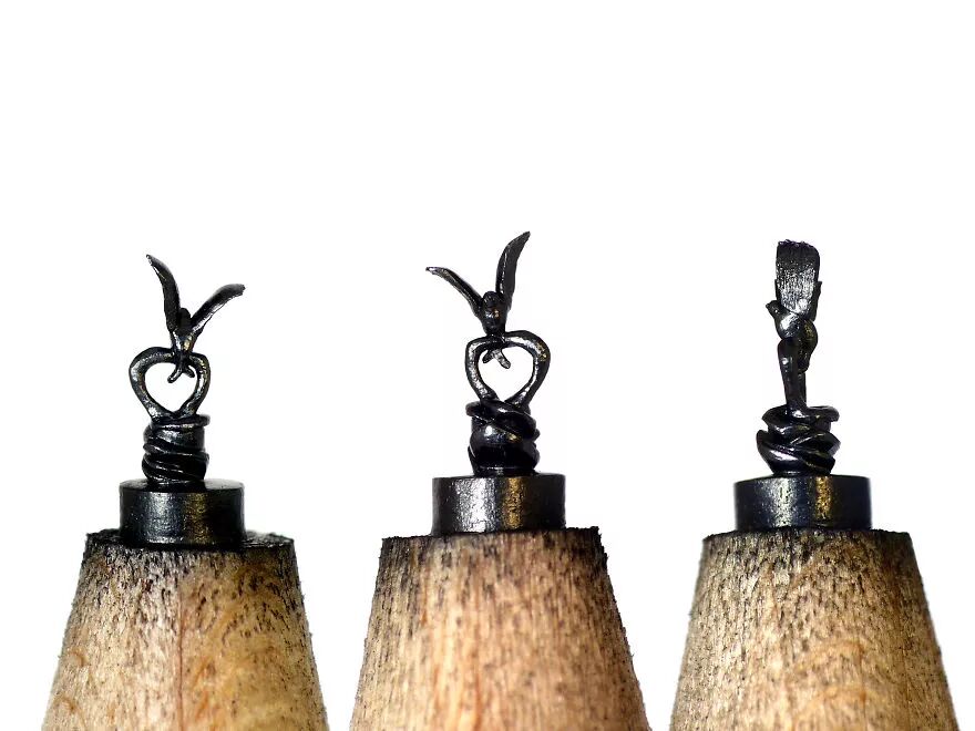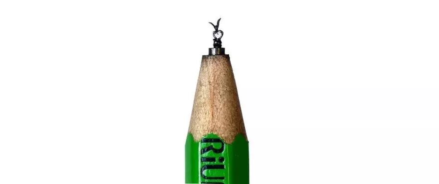 他创作的作品,最小的尺寸只有0.5x1毫米大小,要知道一般一支普通的铅笔芯的直径大约1.8~2.1毫米的样子。