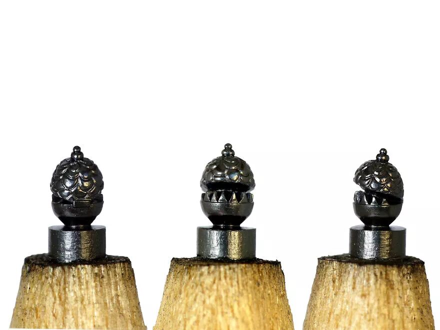 今天油画酱要跟大家介绍一位法国的艺术家玛丽·科希登,他在十年前就开始在显微镜的帮助下,创作微型雕塑。他尝试过多种材料,它们都有着各自的特点以及难点。而笔芯微雕,是他最擅长的一种形式。
