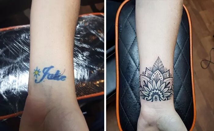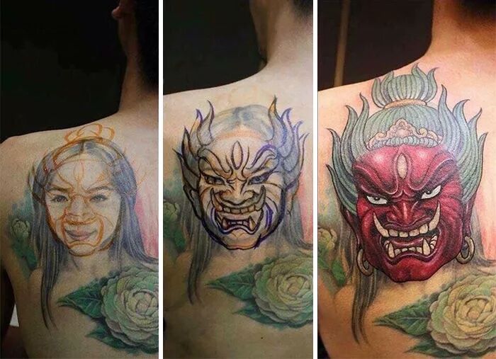 幸运的是,有些技术高超的纹身艺术家,有能力和创造力将这些纹身变成新的东西,放下过去,继续前进,只需一个掩盖过去的纹身就搞定啦!