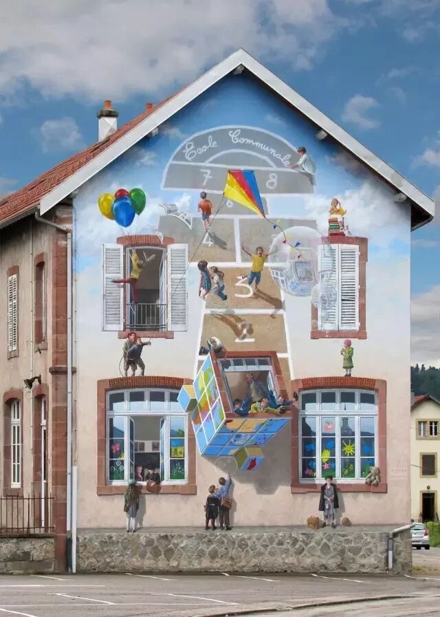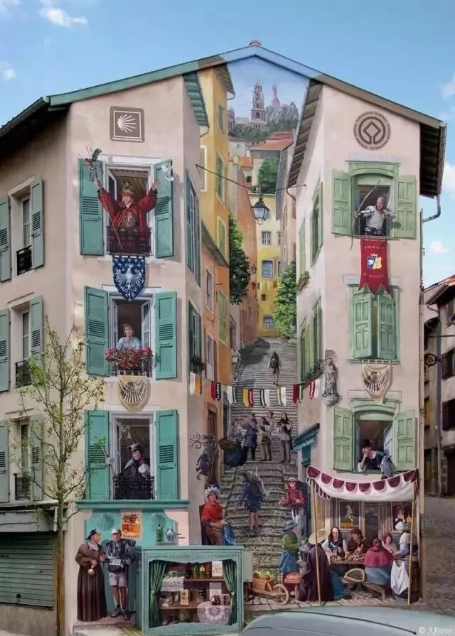 等比例的绘画更逼真,有时甚至分不清哪里是画的,哪里是真实存在的。很多人在看到这些被彩绘过的墙壁与之前的对比时,不禁产生了这样的担忧:“假如住在这里的人出趟远门回来,会不会找不到家了”?