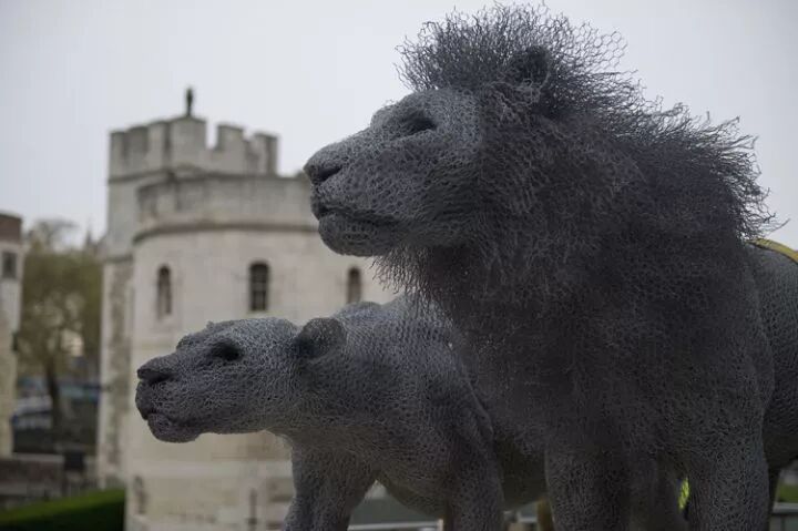 老虎、狮子、犀牛、猴子、猎豹,只要自然界中可以看到的动物,都被肯德拉·哈斯特用金属丝制作成了长久保存的艺术品,这样的艺术品比真实的动物更能给人带来视觉冲突和艺术享受。
